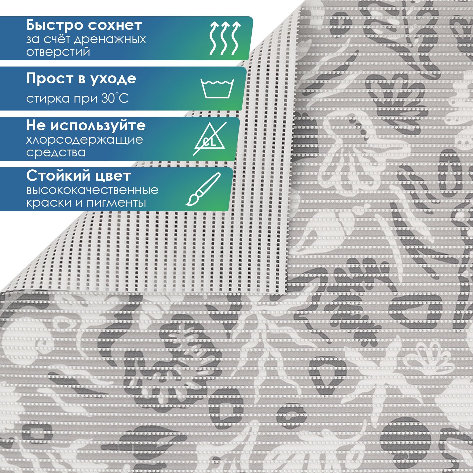 Коврик для ванны душа и туалета VILINA из вспененного ПВХ противоскользящий мягкий безворсовый 50х80см рисунком 116 серый