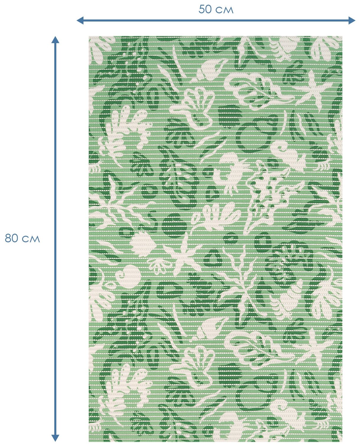 Коврик для ванны душа и туалета VILINA из вспененного ПВХ противоскользящий мягкий безворсовый 50х80 с рисунком OV12 фисташковый/зеленый