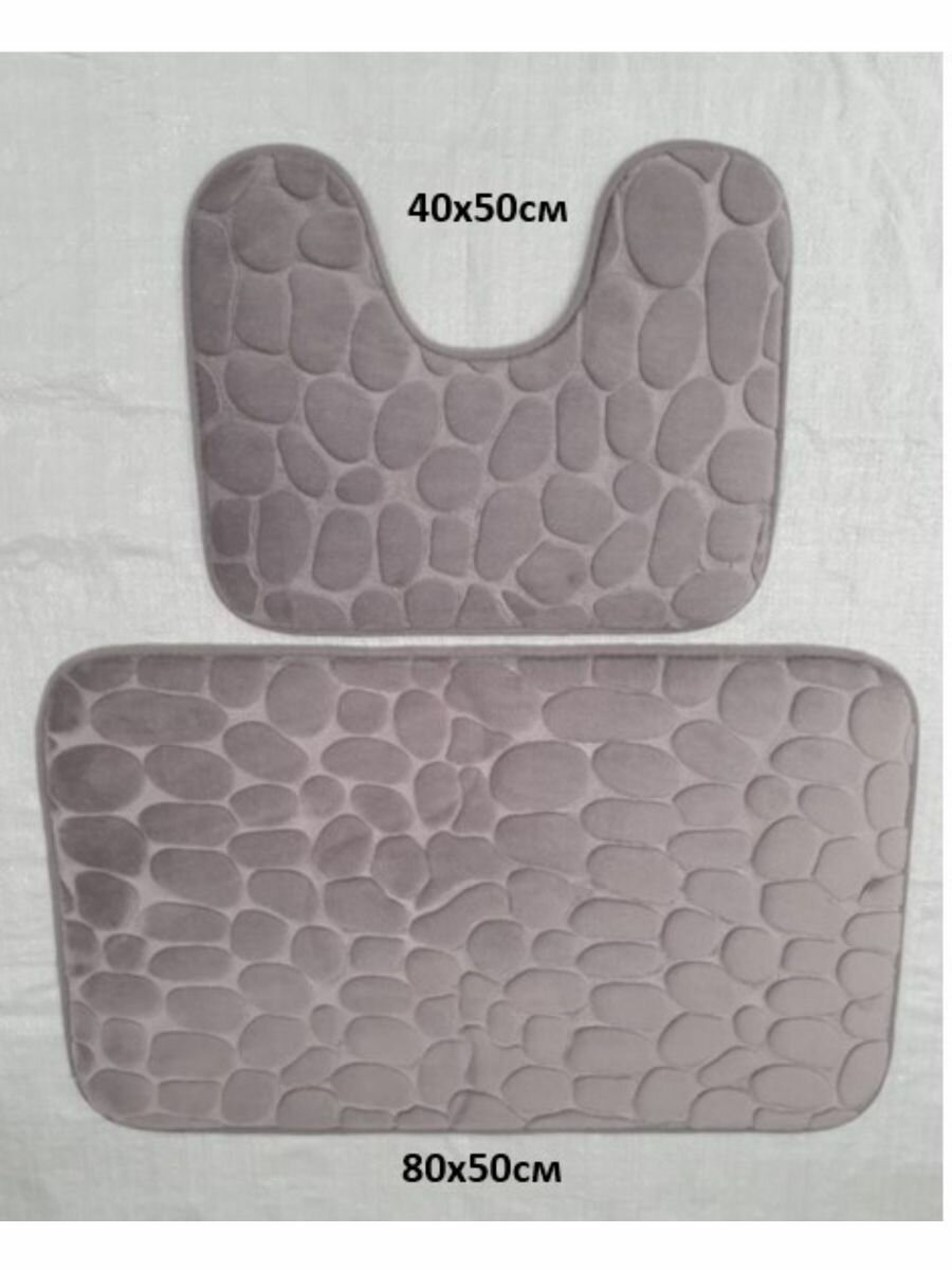 Коврики для ванной и туалета 2шт, светло-серый, камни. интересное: