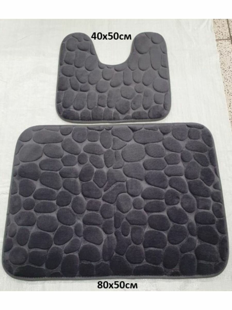 Коврики для ванной и туалета 2шт, темно-серый, камни.