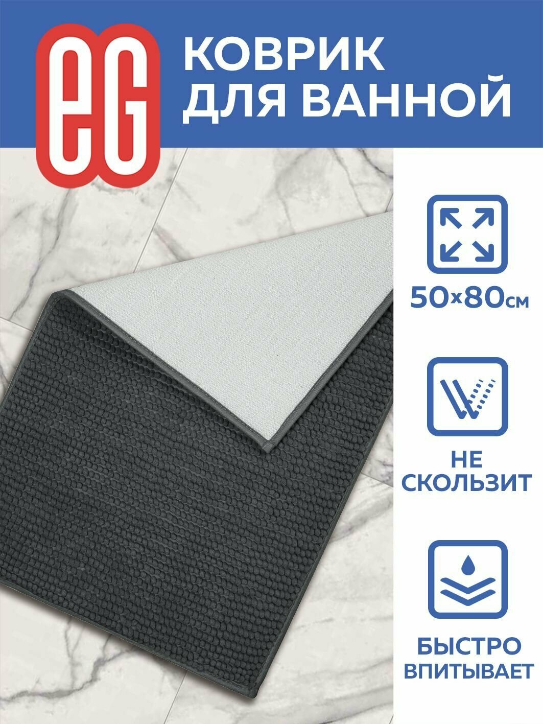 Коврик для ванной противоскользящий 50х80см EG-Еврогарант с ворсом серый
