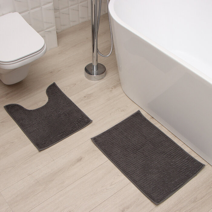 Купить Набор ковриков для ванной Этель Букли цвет темно-серый 2 шт, 38х58 см, 48х38 см