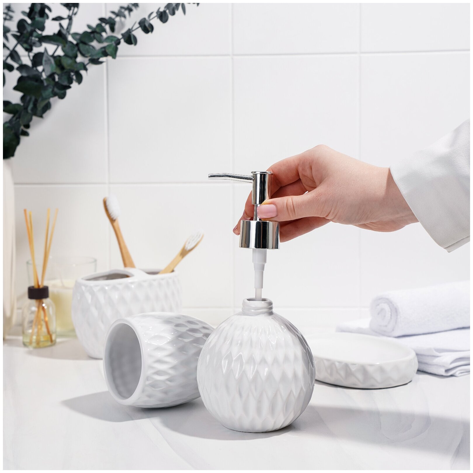 Купить Набор аксессуаров для ванной комнаты «Камелия», 4 предмета (дозатор 450 мл, мыльница, 2 стакана), цвет белый