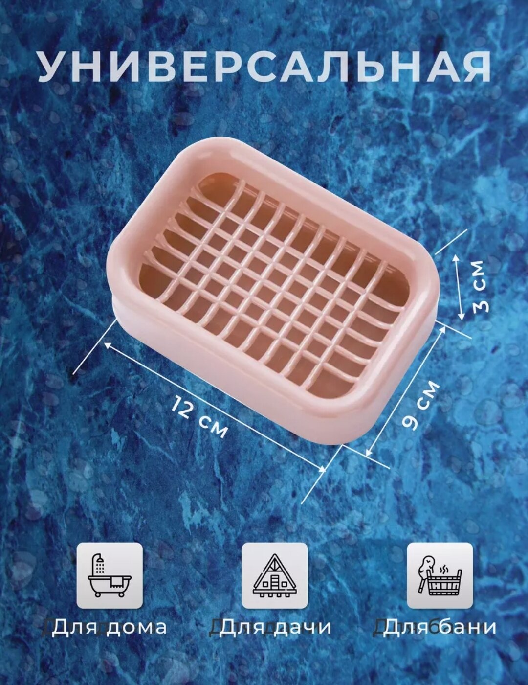 Мыльница со сливом розовая, пластиковая. с двойным решетчатым дном