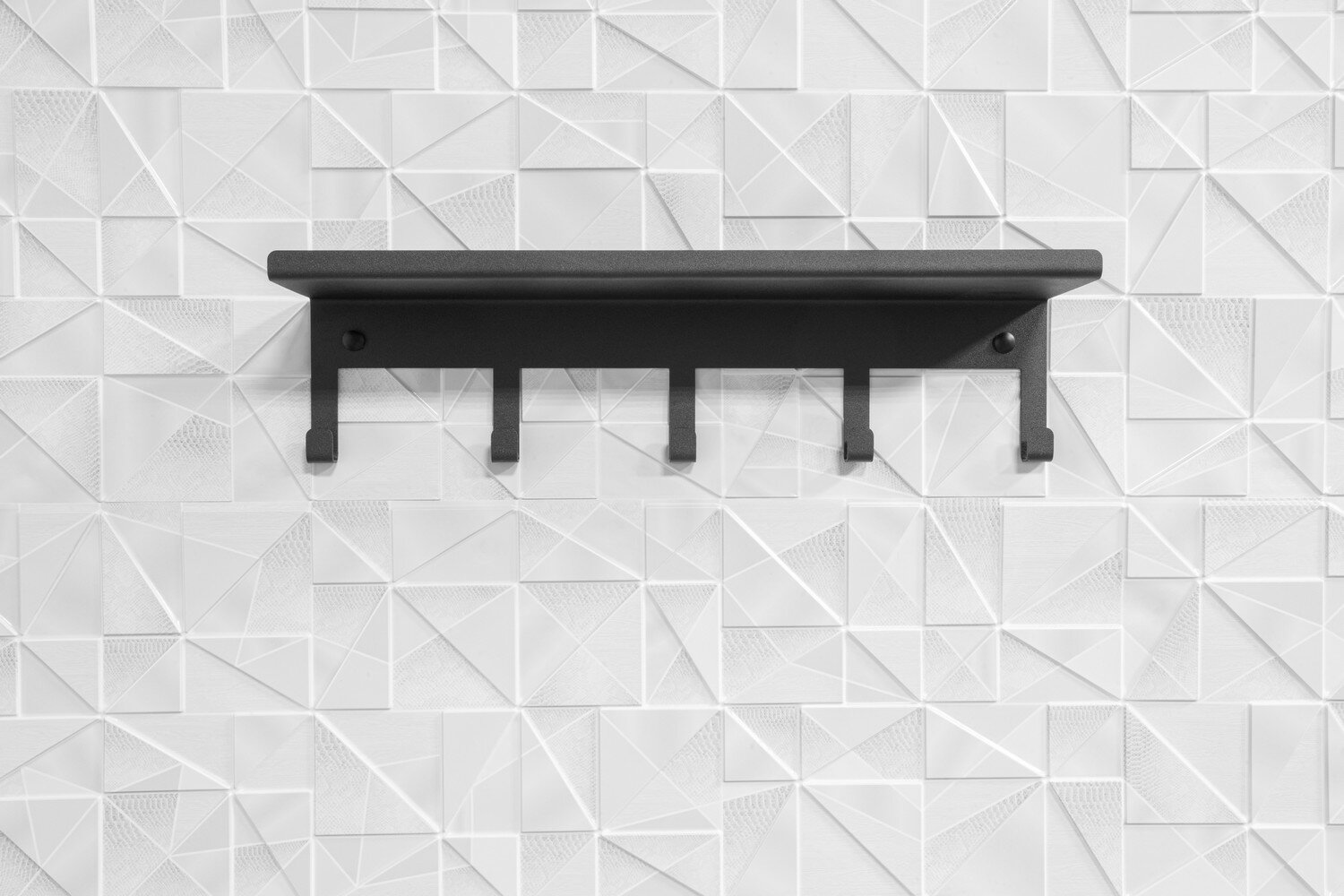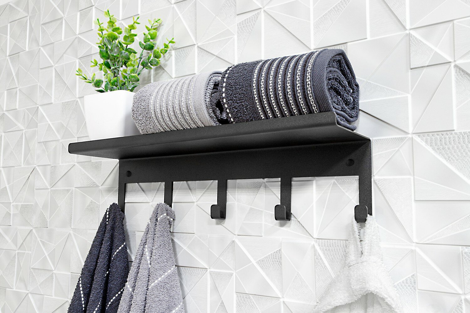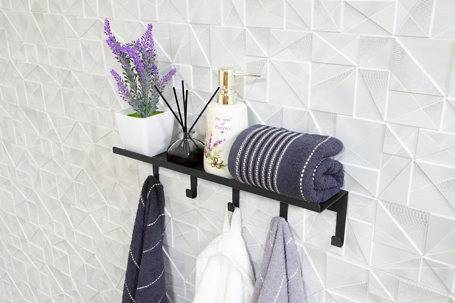 Купить Полка с крючками (5 шт.) для ванной комнаты, черная (сталь)