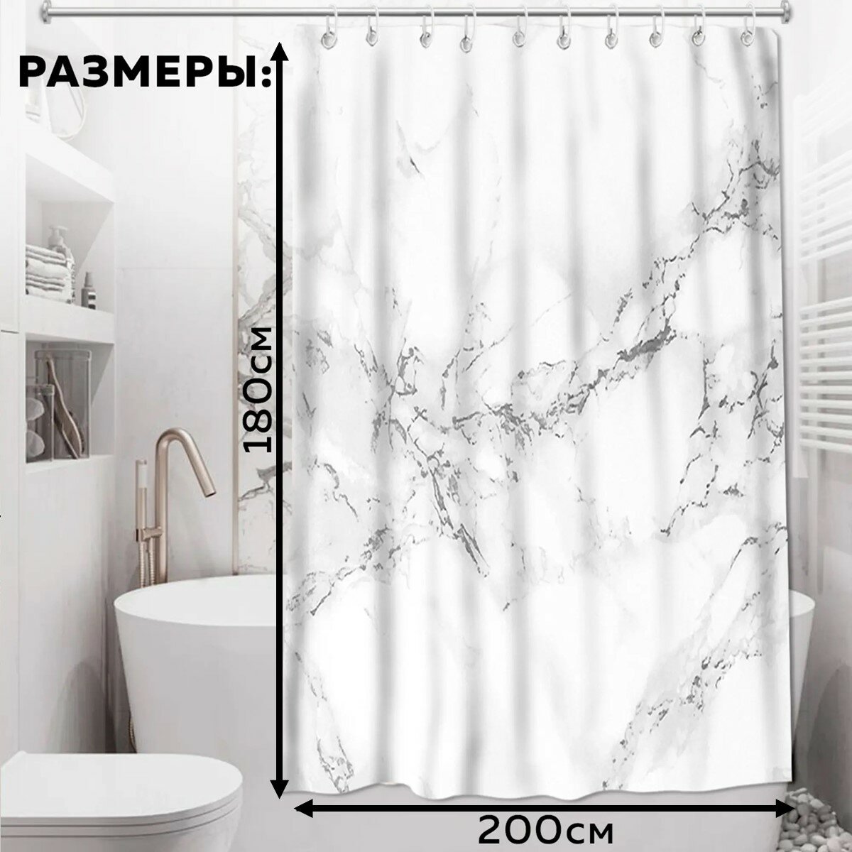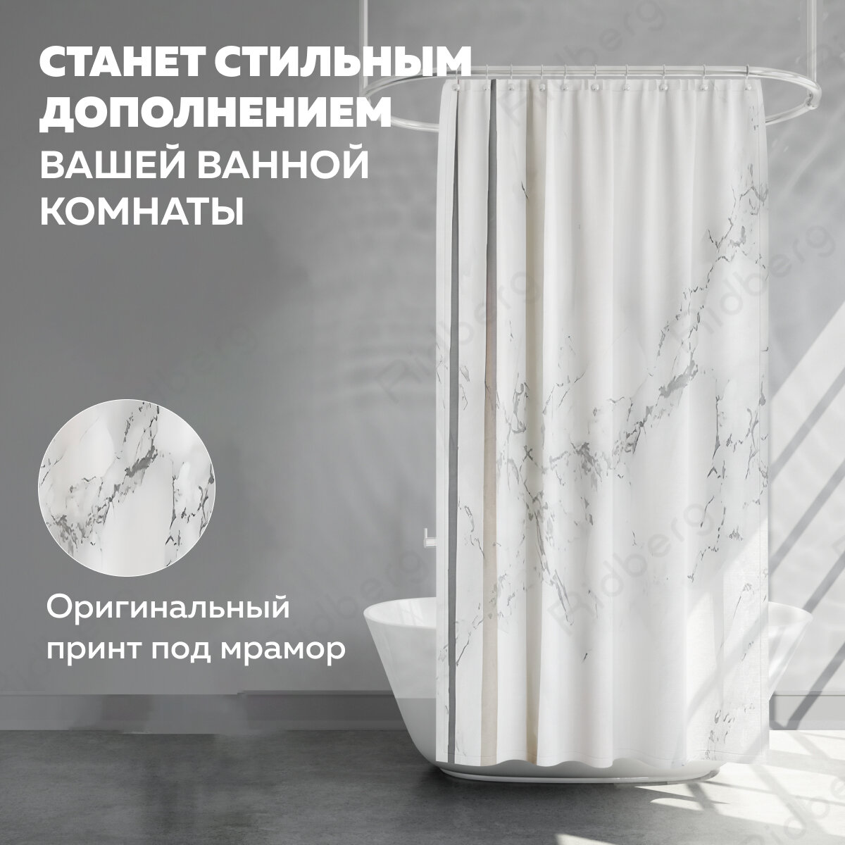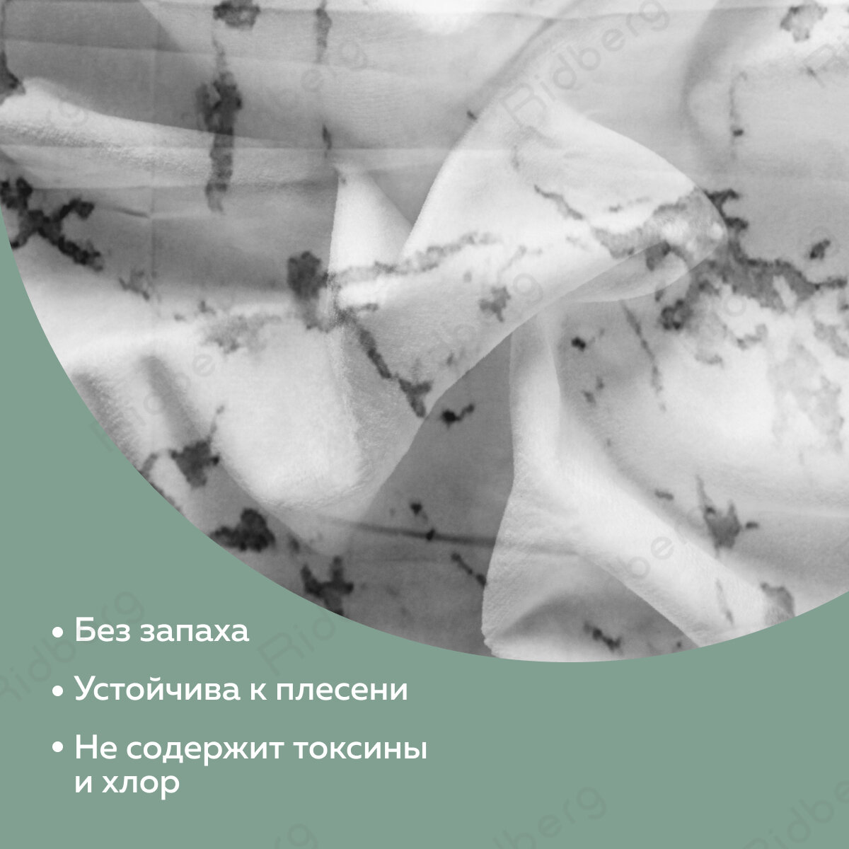 Штора для ванной тканевая Ridberg Marble белая 180х200 см, с кольцами / шторка для душа водоотталкивающая интересное: