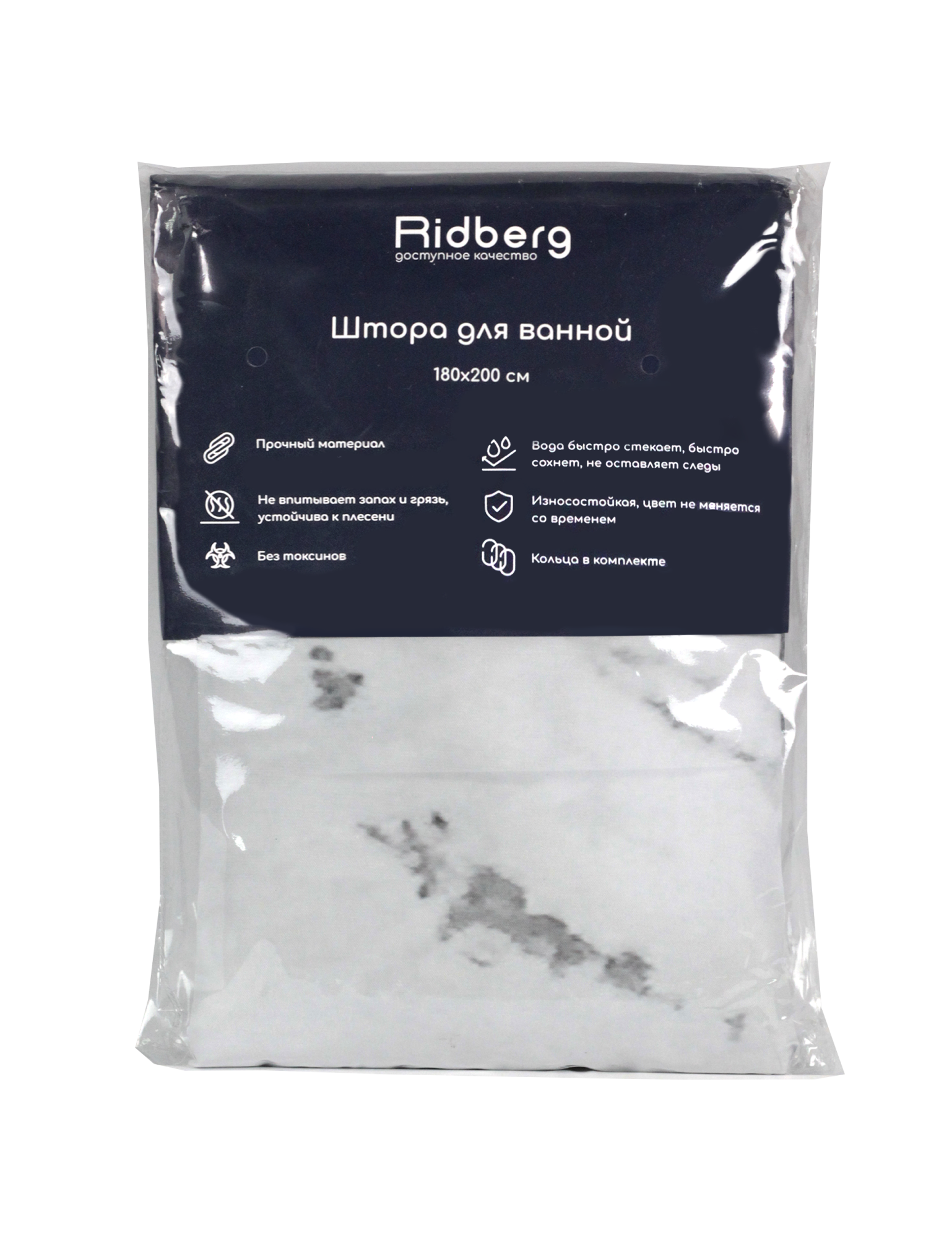 Шторка для ванной комнаты 180x200 см Ridberg Белый мрамор