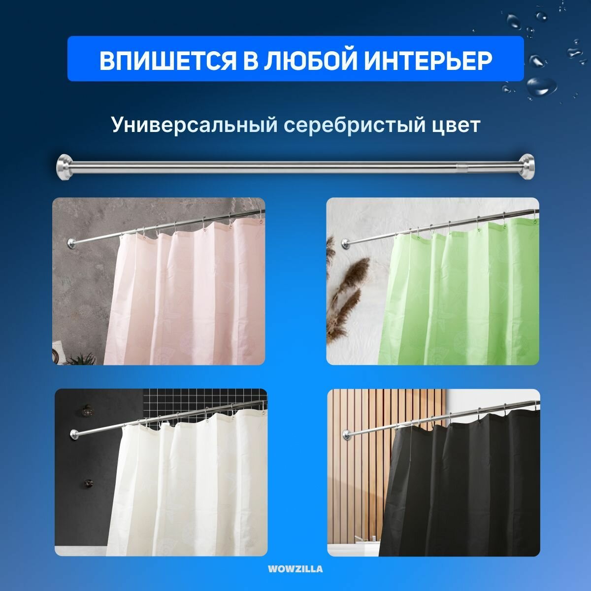 Карниз для ванной, Штанга для шторы в ванной Wowzilla интересное: