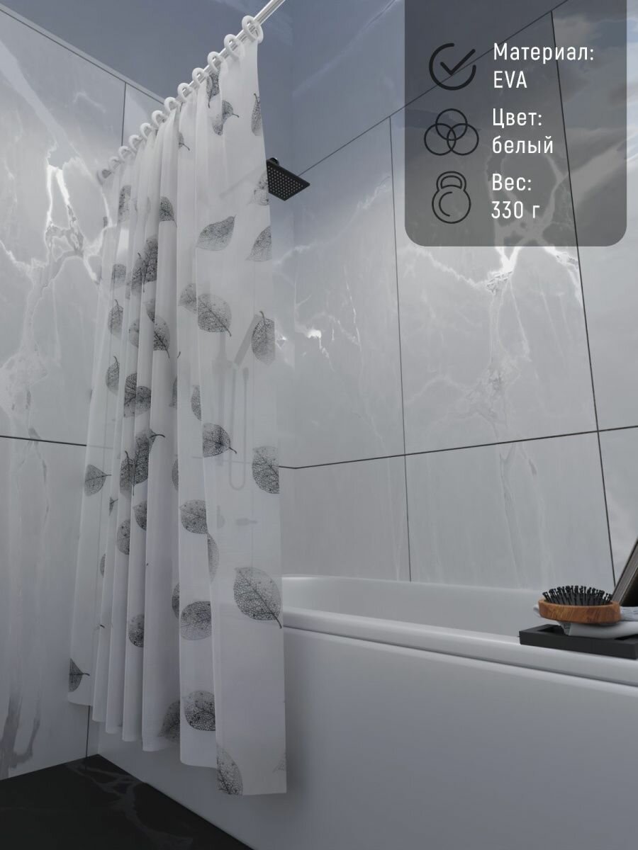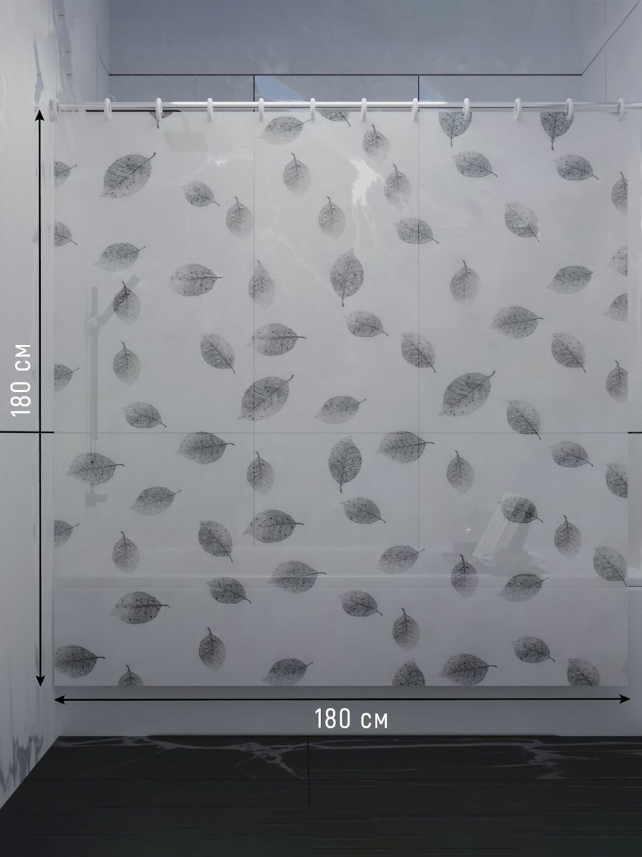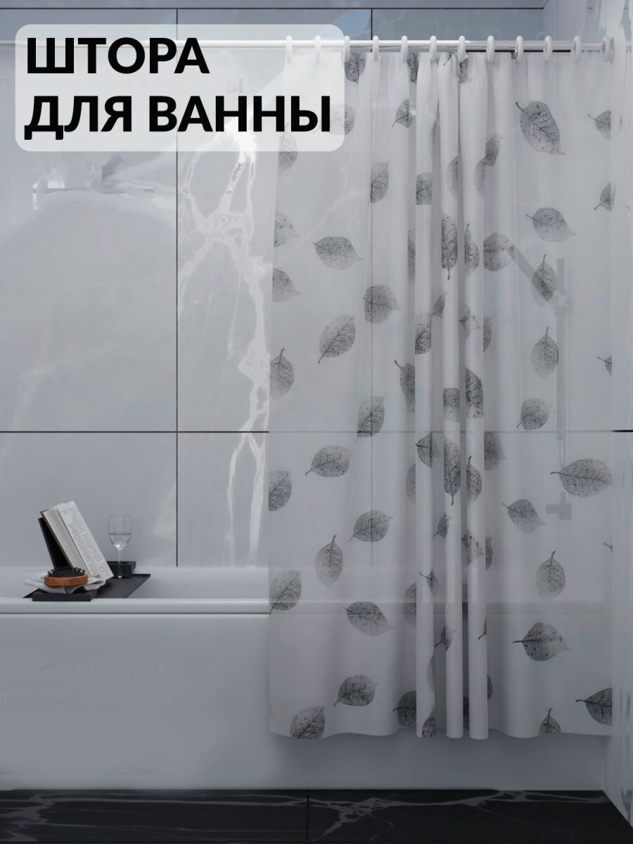Штора для ванны Доляна «Чёрно-белые листья», 180×180 см, EVA интересное: