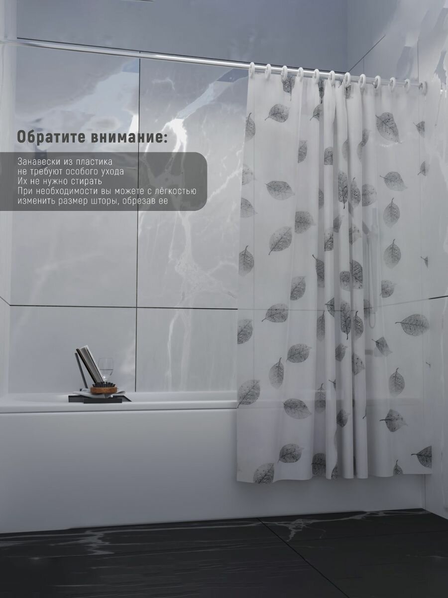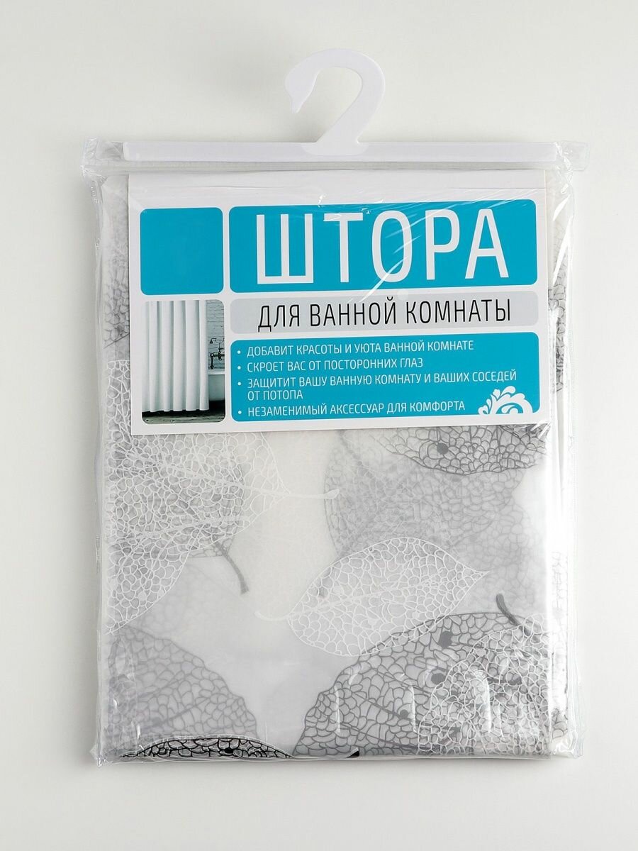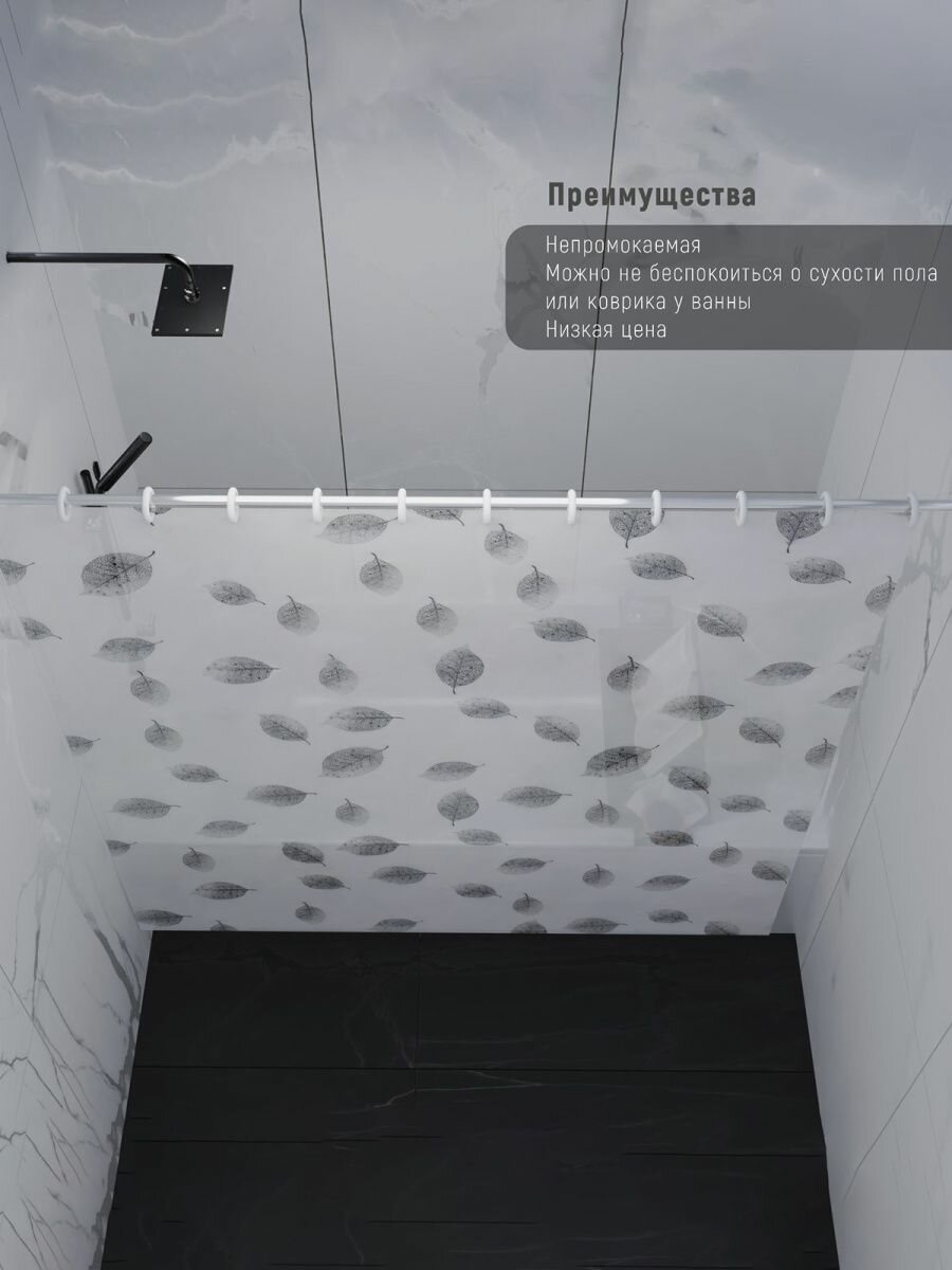 Штора для ванны Доляна «Чёрно-белые листья», 180×180 см, EVA интересное: