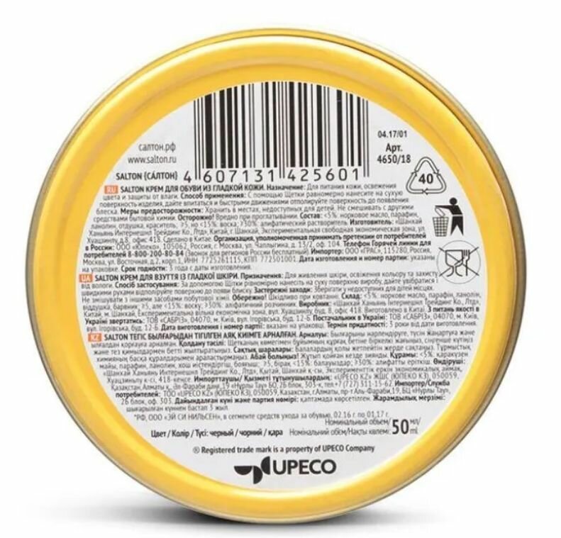 SALTON крем для обуви из гладкой кожи в банке 50 мл Черный (3шт в наборе) интересное: