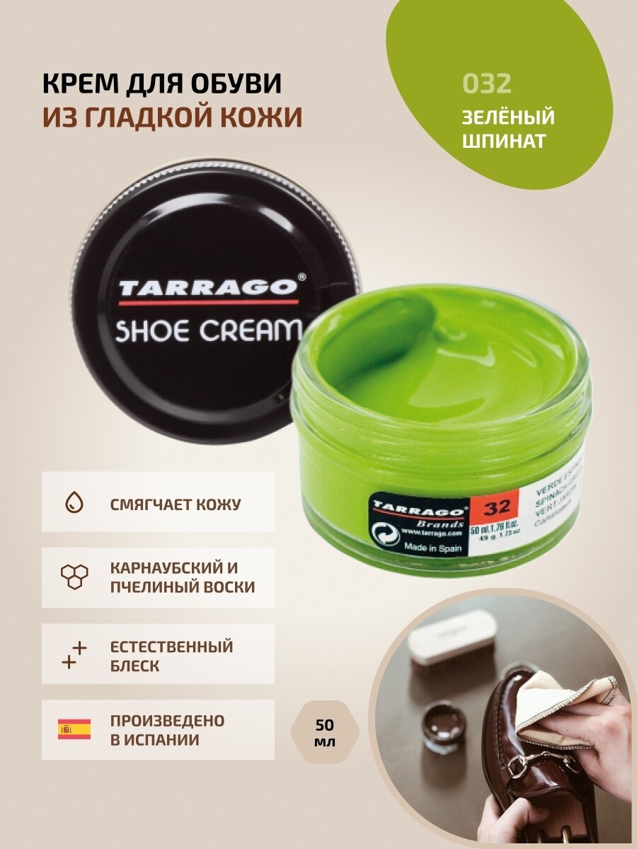 Крем для обуви, всех видов гладких кож, TARRAGO, SHOE Cream, стекло, 50мл., TCT31-032 SPINACH GREEN (Зеленый шпинат) интересное: