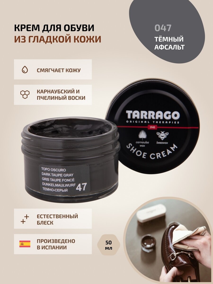 Крем для обуви, всех видов гладких кож, TARRAGO, SHOE Cream, стекло, 50мл., TCT31-047 DARK TAUPE GRAY (Темный асфальт) интересное: