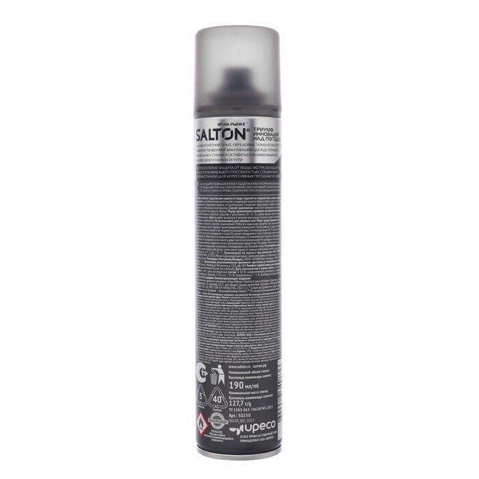 Ниже Вы можете прочитать отзывы на Водоотталкивающая пропитка для обуви и одежды, защита от воды, Salton EXTREME, 190мл, ознакомится с подробными характеристиками, посмотреть интересные обзоры и фотографии на Водоотталкивающая пропитка для обуви и одежды, защита от воды, Salton EXTREME, 190мл.