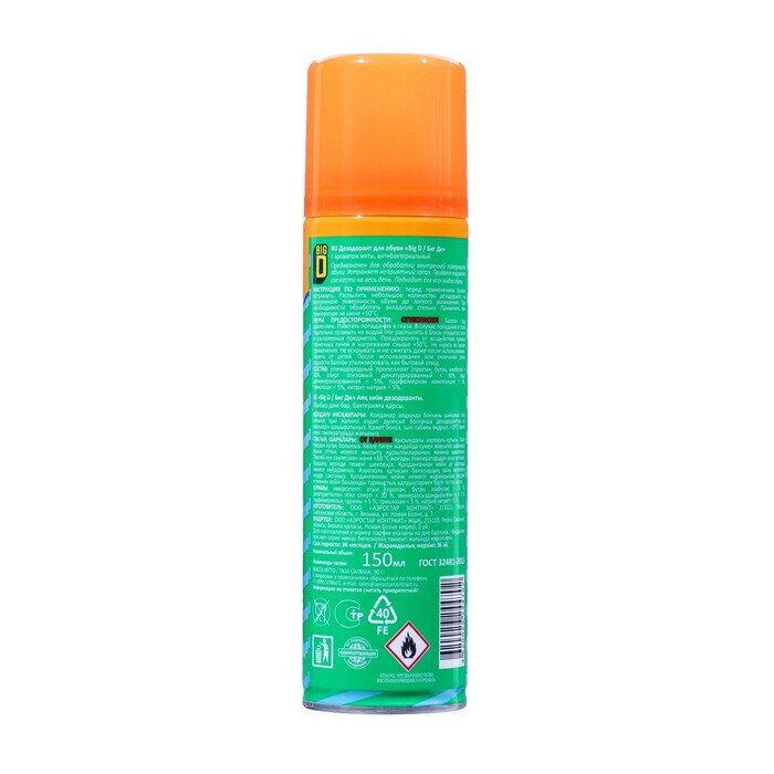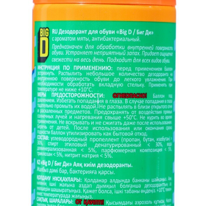 Дезодорант для обуви "Big D" с ароматом мяты, 150 мл интересное: