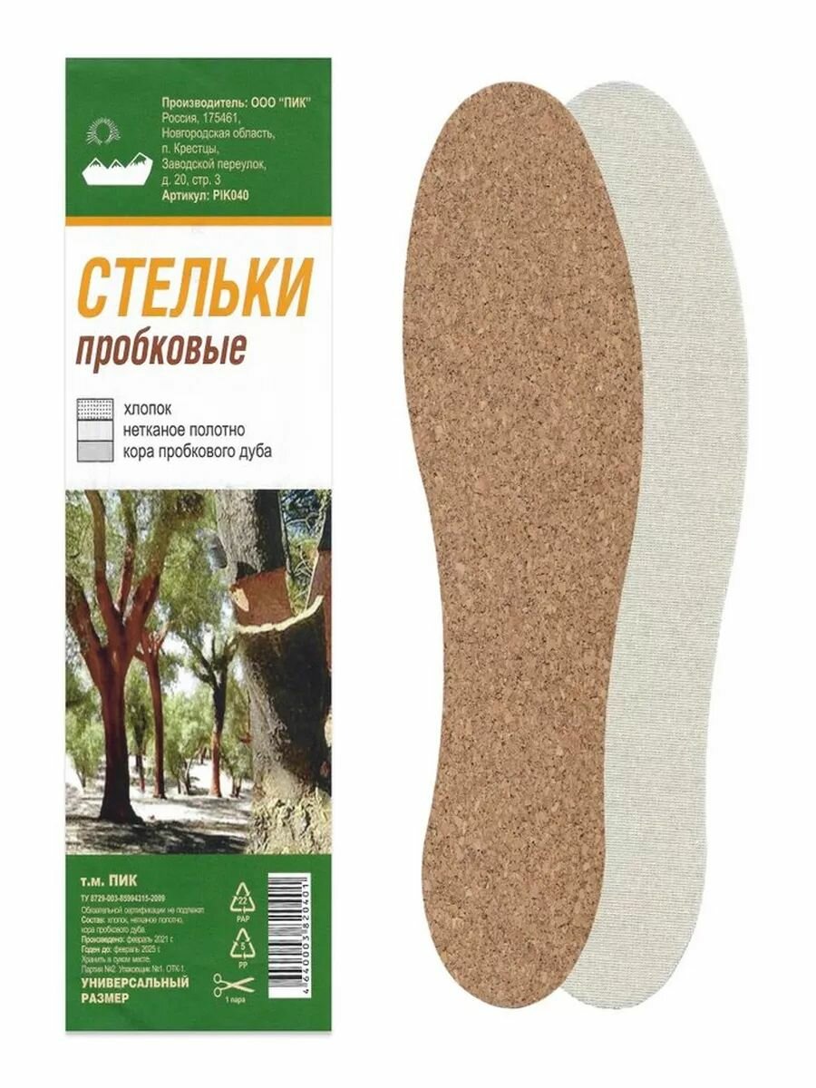 Стельки для обуви ПИК Пробковые 1 шт. 36-45 коричневый 29-30 см универсальный интересное: