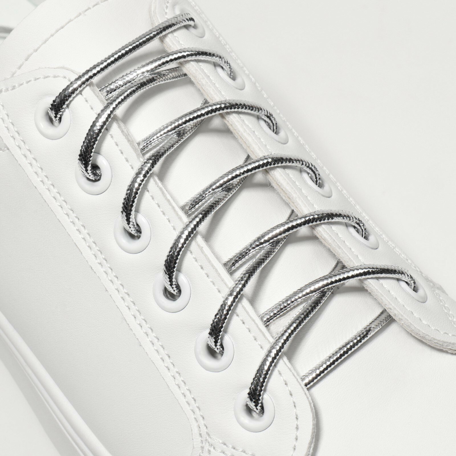 Шнурки серебряные для обуви круглые диаметр 4 мм длина 120 см