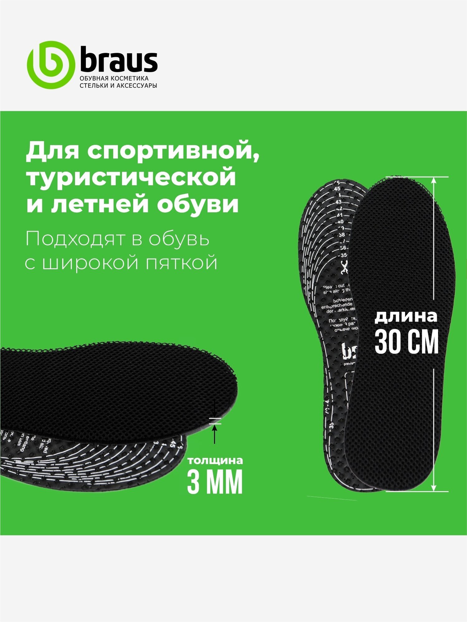 Стельки для обуви кроссовок мужские женские спортивные анатомические 35-40 Braus