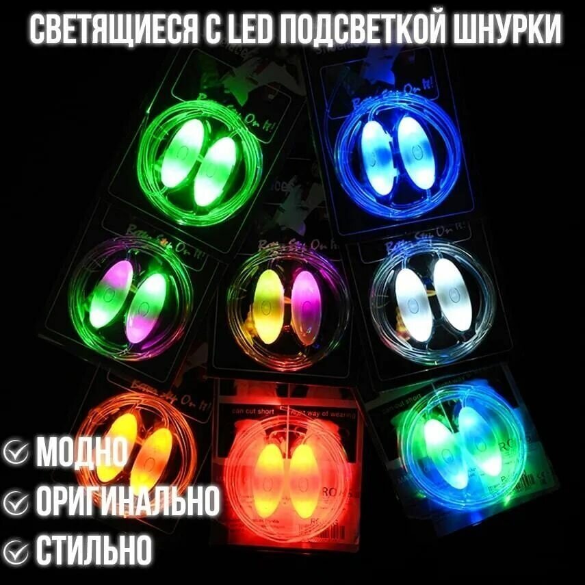 Светящиеся шнурки с LED подсветкой 80 см Цветные , набор 2 шт интересное: