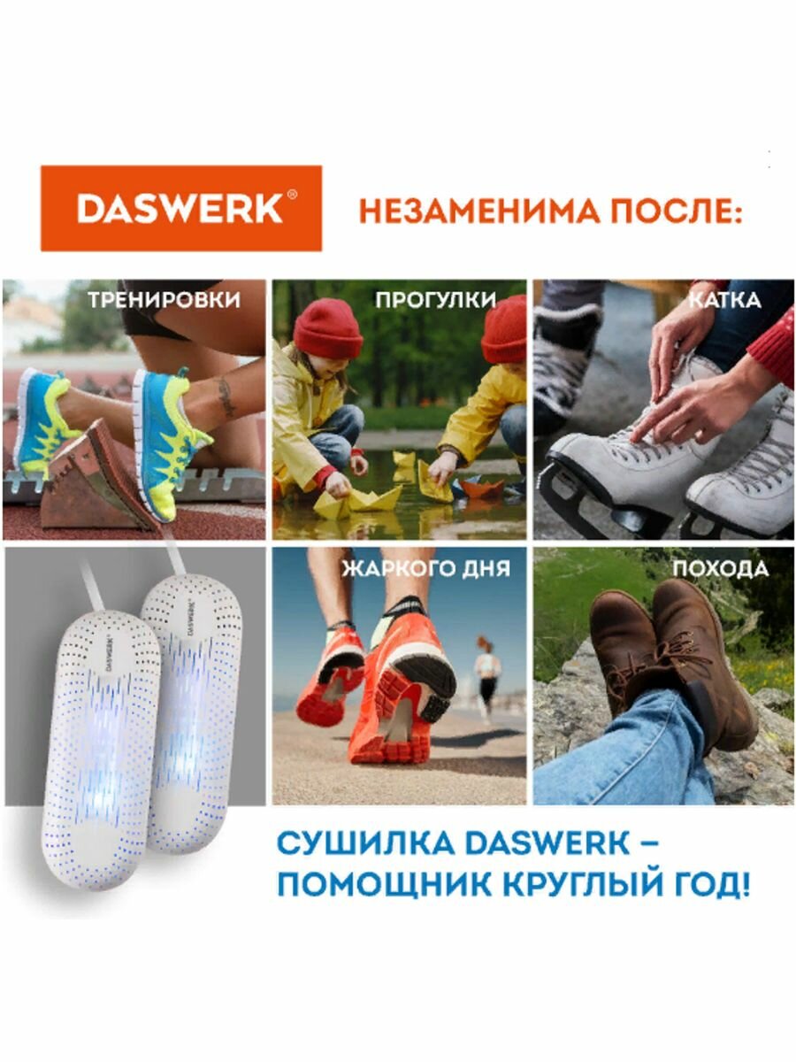 СохранитьCушилка для обуви, электрическая (сушка, электросушилка) от запаха с подсветкой и таймером, 12 Вт, Daswerk, Sd8, 456201 интересное: