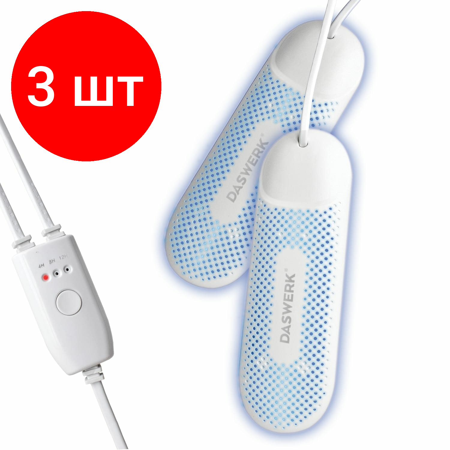 Купить Комплект 3 шт, Сушилка для обуви электрическая с подсветкой и таймером, сушка для обуви, 12 Вт, DASWERK, SD8, 456201