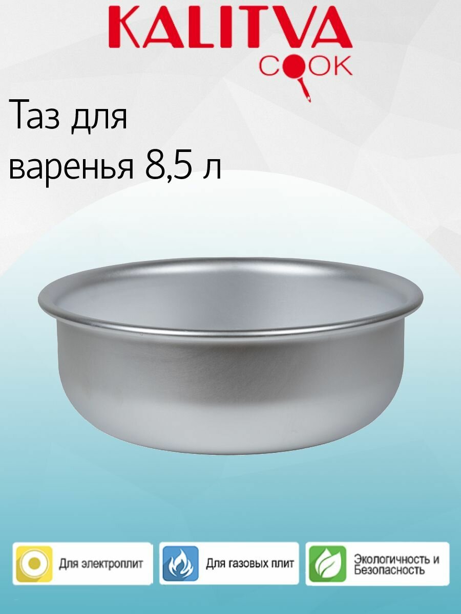 Таз для варенья Калитва 5341, серебристый, пищевой алюминий, 8,5 л