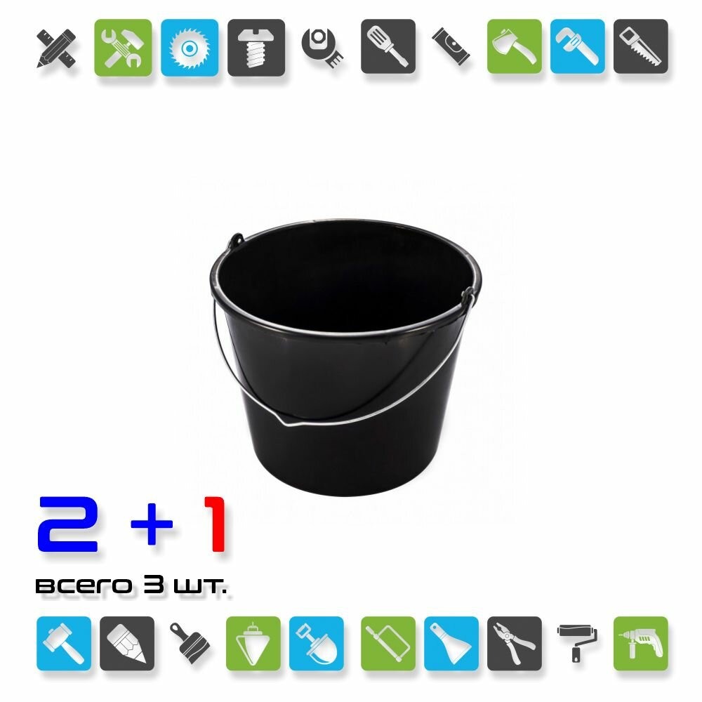 Ведро полиэтиленовое 12 л строительное ( х 3 шт.) интересное: