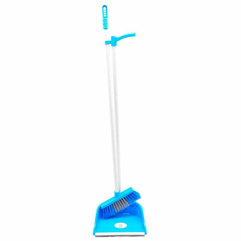 Комплект для уборки совок с щеткой для пола AF201-B, длинный ворс, синий