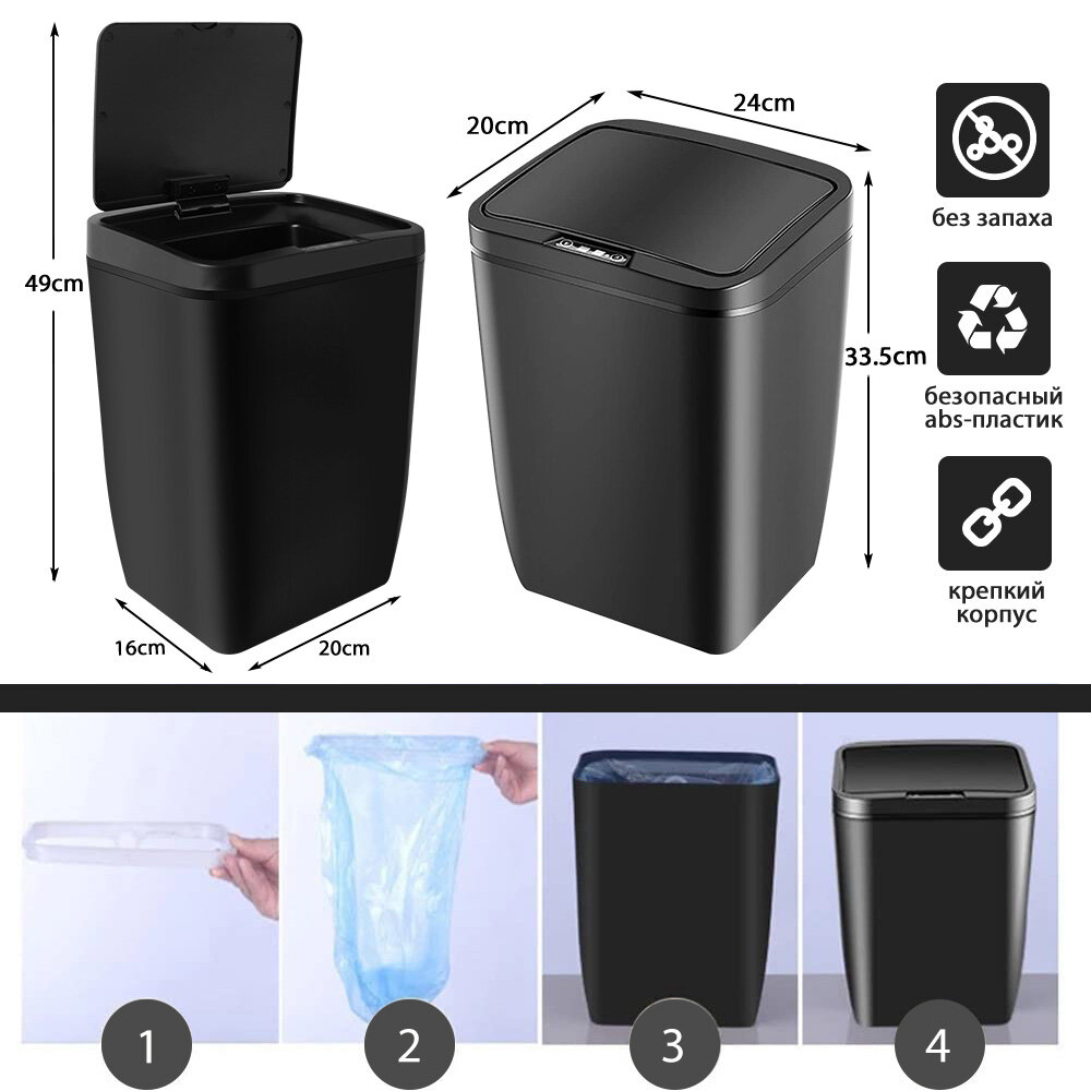 Мусорное ведро DARIS с автоматическим датчиком, на батарейках, 12л, черное интересное: