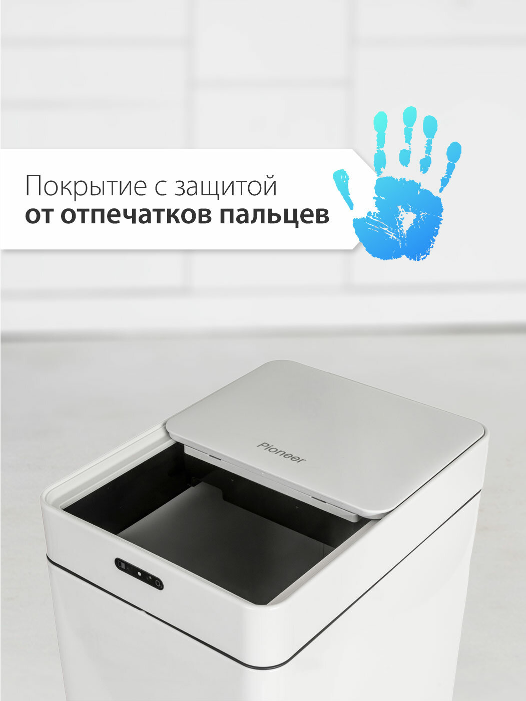 Мусорное ведро сенсорное металлическое с сдвижной крышкой Pioneer WB426W42 литра / дезинфекция озоном / Умное ведро / 2 режима открывания интересное: