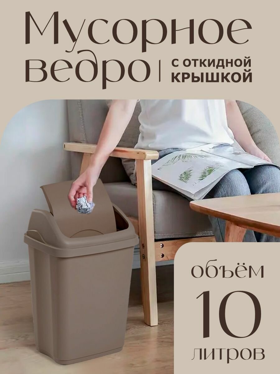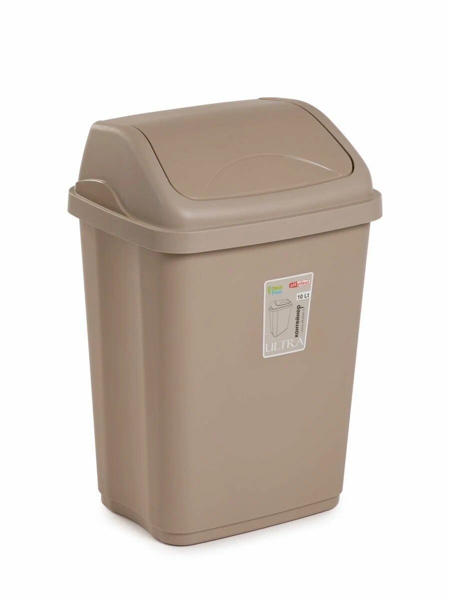 Мусорное ведро elfplast "Ultra" с крышкой пластиковое 10 л, (серо-коричневый) 589