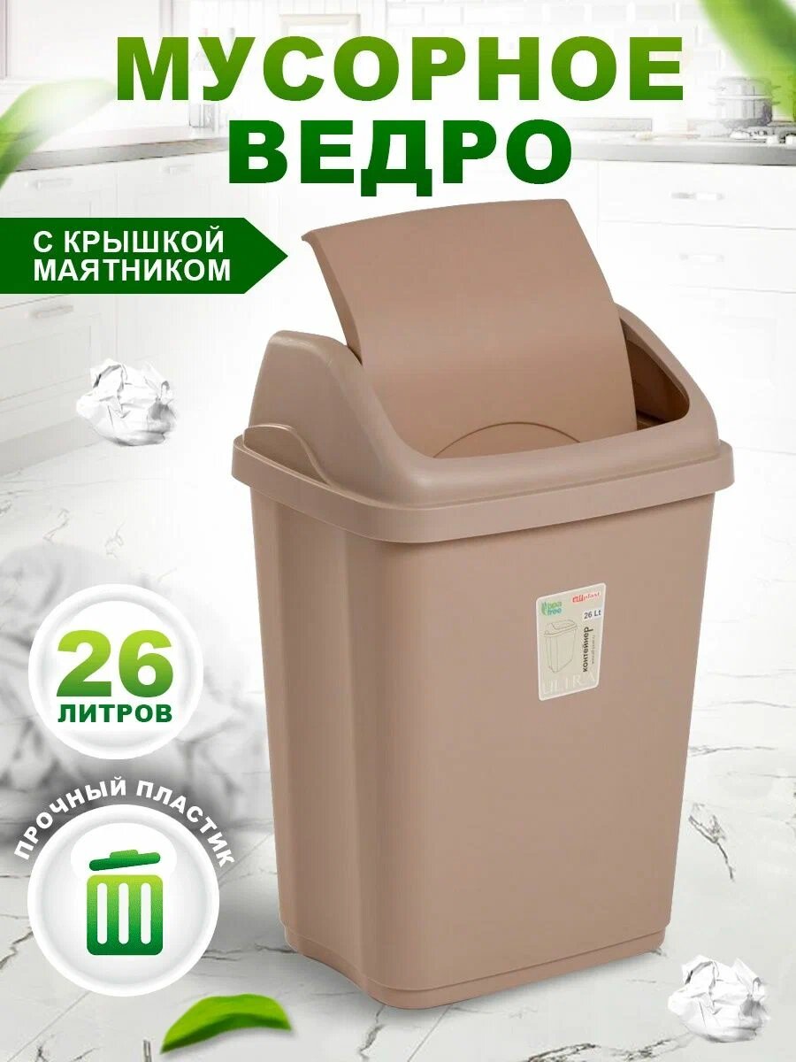 Мусорное ведро elfplast "Ultra" с крышкой пластиковое 26 л, (серо-коричневый) 591