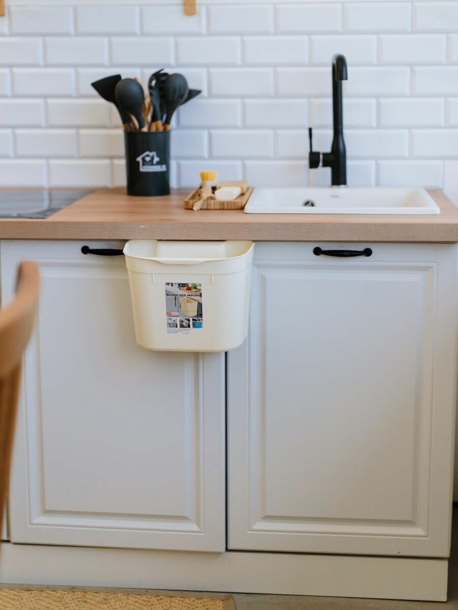 СохранитьКонтейнер навесной многофункциональный .Мусорное ведро подвесное для кухни.цвет- бежевый . интересное: