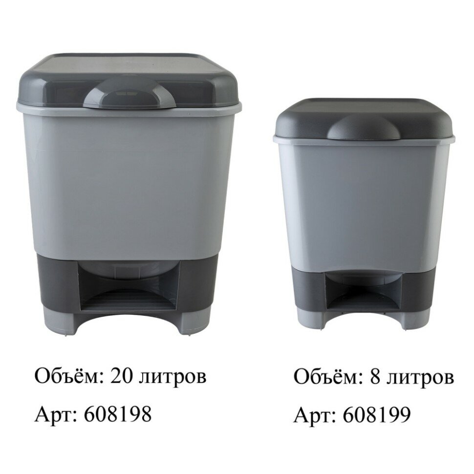 СохранитьНабор из 2 шт, Ведро-контейнер 8 л с педалью, для мусора, 30х25х24 см, цвет серый/графит, 427-СЕРЫЙ, 434270065 (608199) интересное: