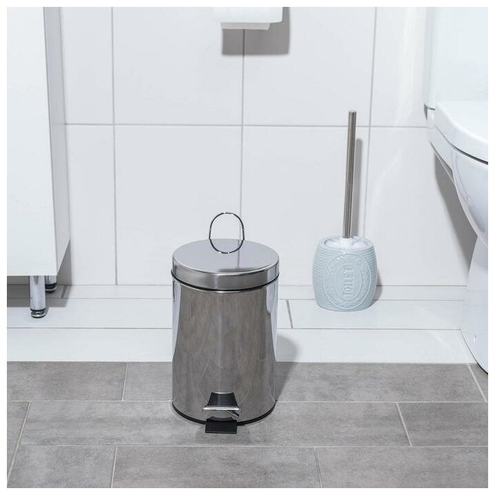 Ведро мусорное с педалью Доляна, 5 л, нержавеющая сталь, цвет хромированный