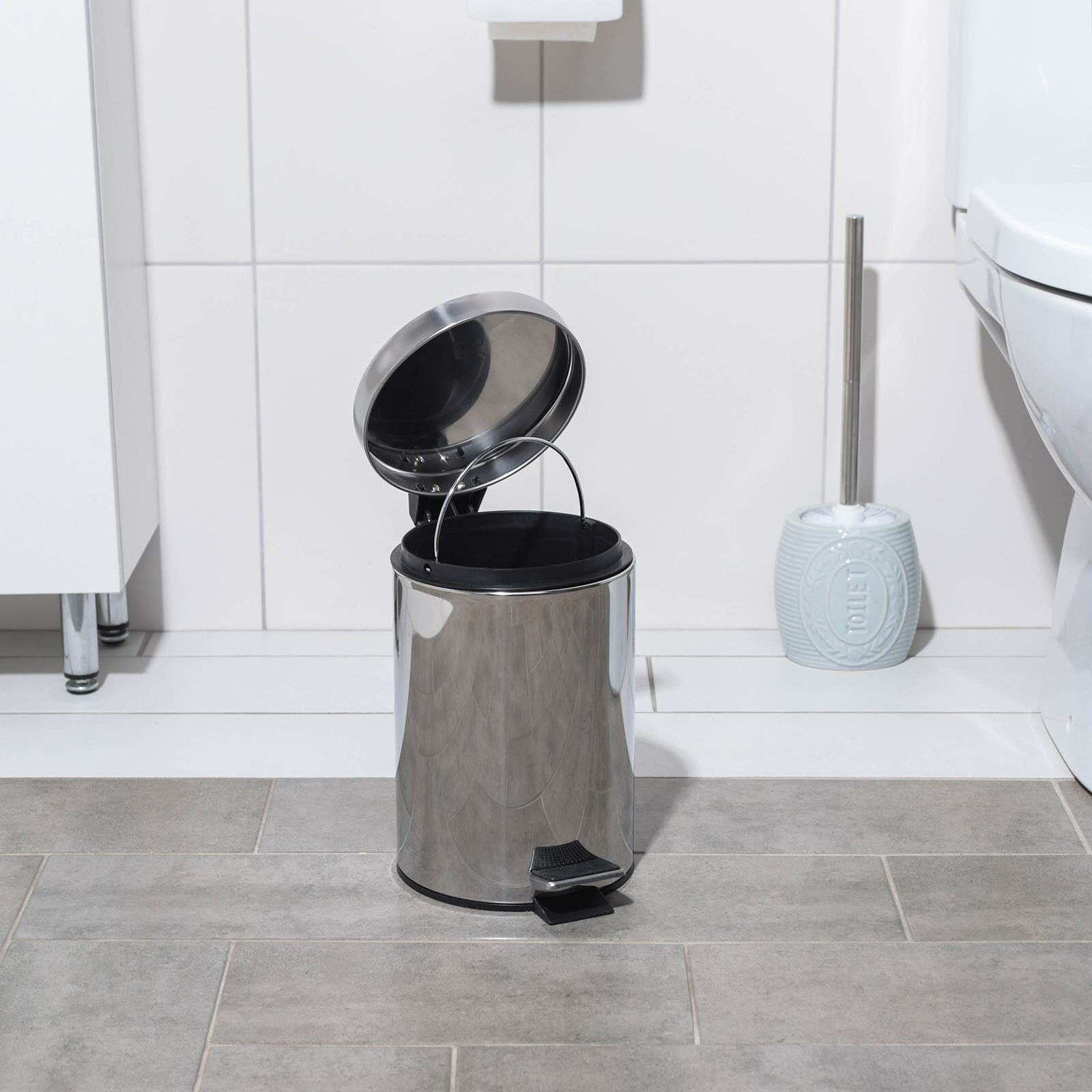 Ведро мусорное с педалью Доляна, 5 л, нержавеющая сталь, цвет хромированный