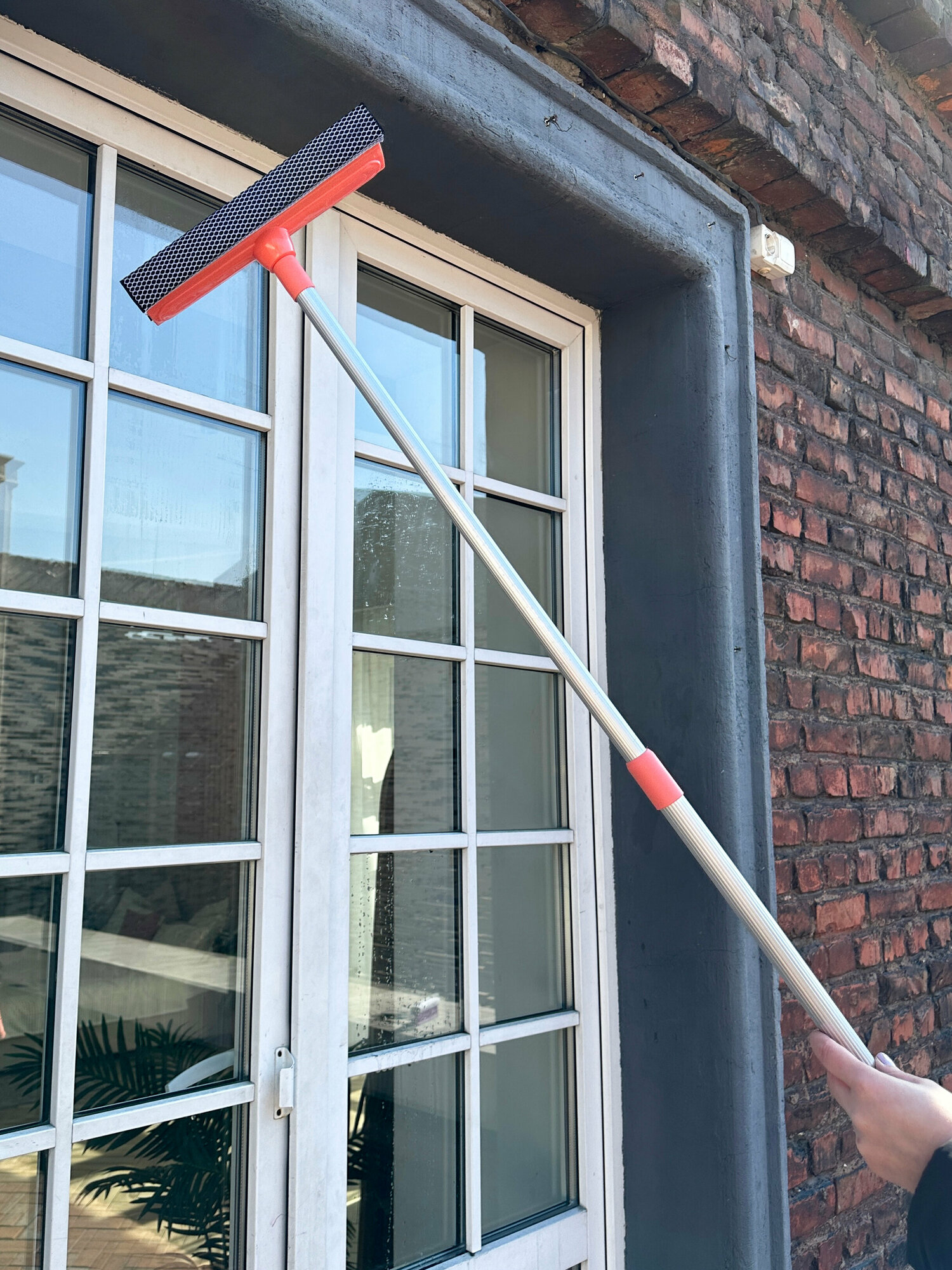 Щетка для мытья окон Hitt, резиновый скребок и губка, телескопическая ручка 96 см