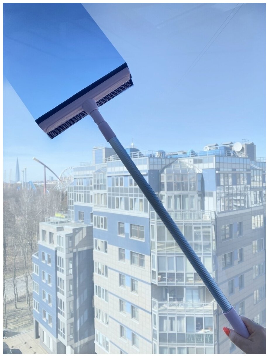 Щетка для мойки окон телескопическая Homy Mood, стекломой со сгоном 25х69-118 см, стеклоочиститель голубой