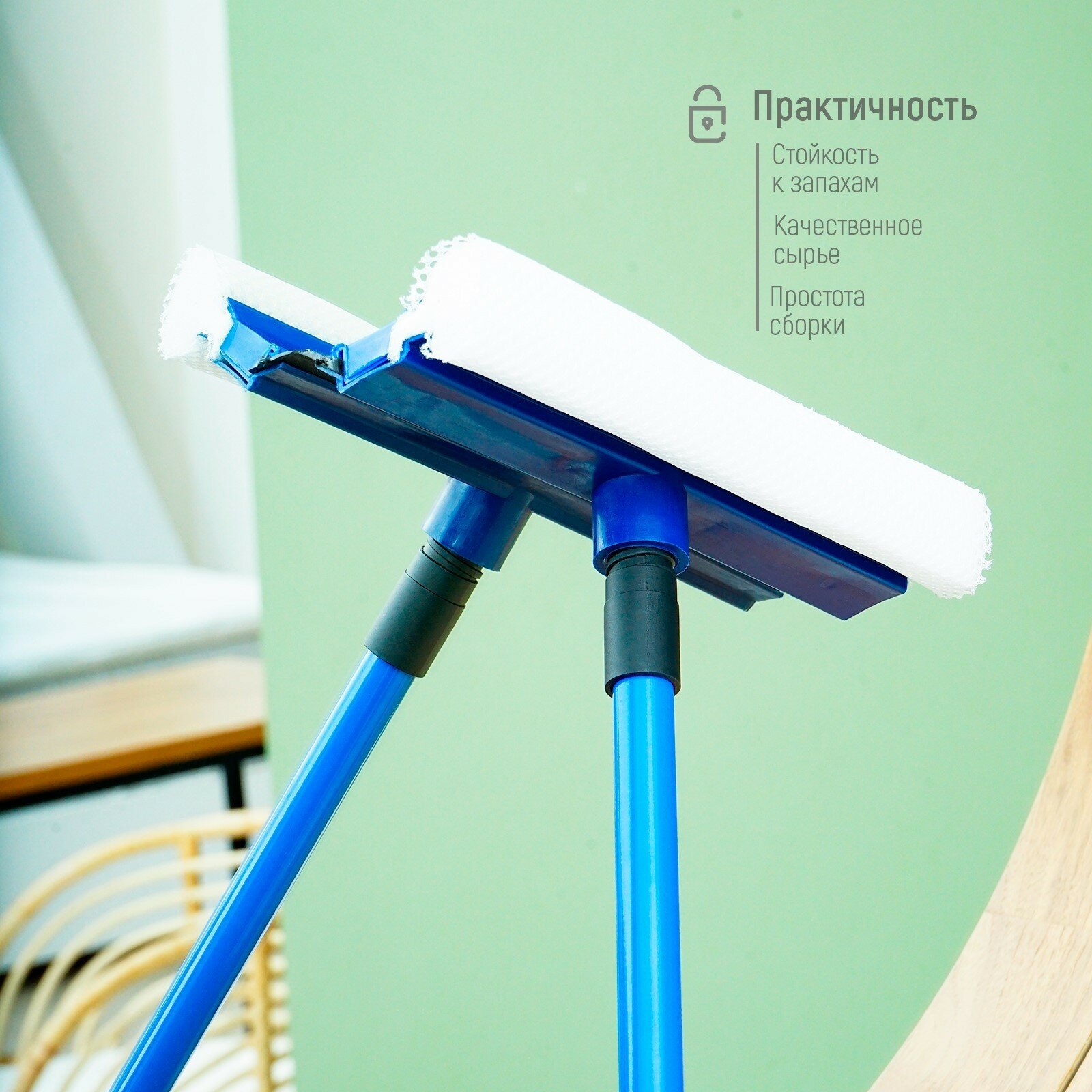 Окномойка с телескопической металлической окрашенной ручкой и сгоном Доляна, 20×49 см, поролон, цвет синий интересное: