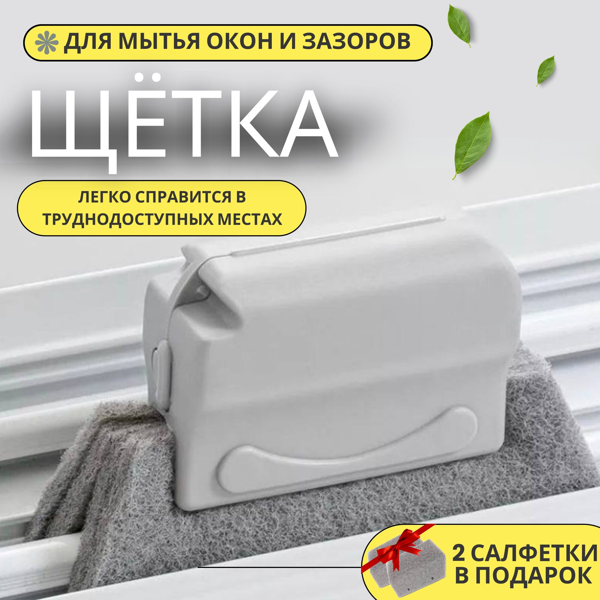 Салфетка для уборки, щетка для мытья окон, углов и зазоров, салфетка-губка набор 1 шт + 2 сменные салфетки
