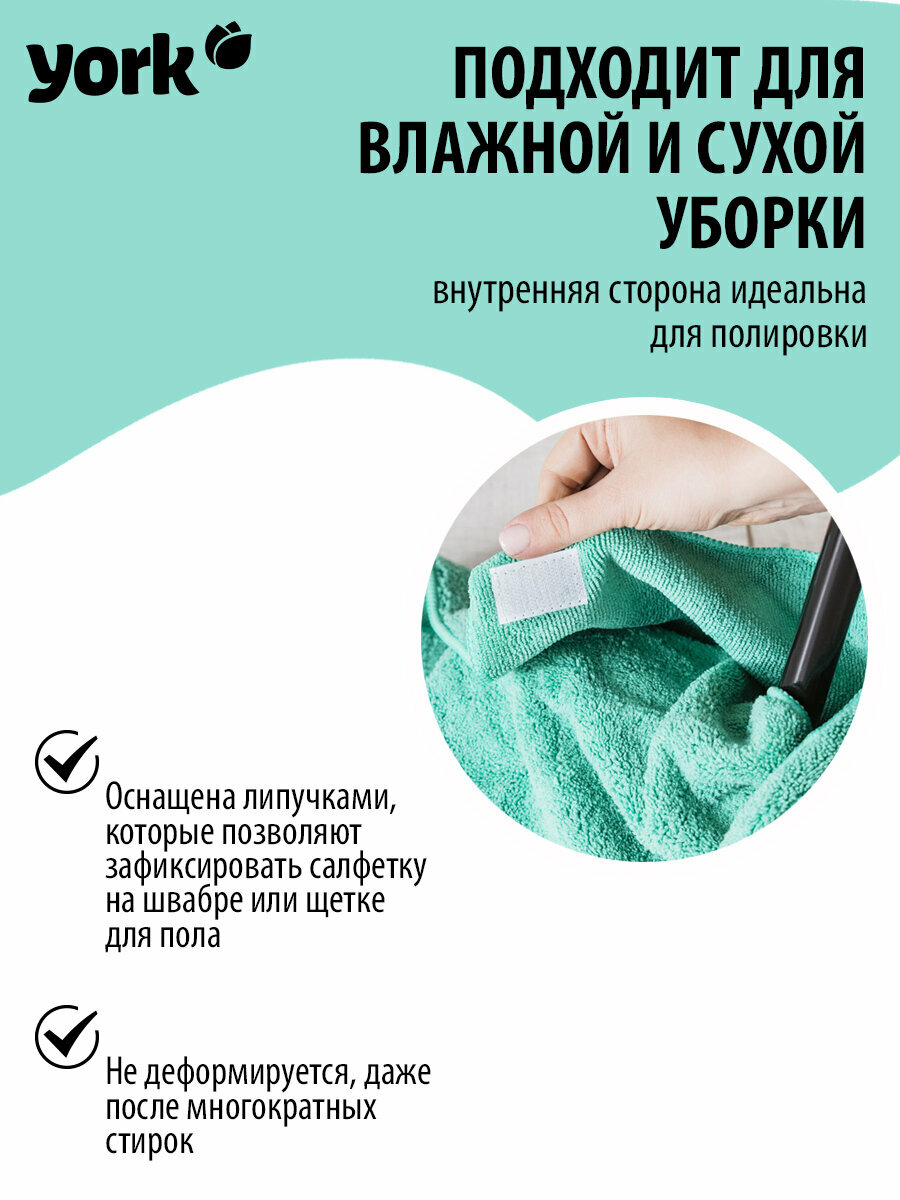 Салфетка из микрофибры для пола двусторонняя с застежкой YORK 1 шт (50х60 см), тряпка для швабры, тряпка для пола из микрофибры Салфетка Универсальная