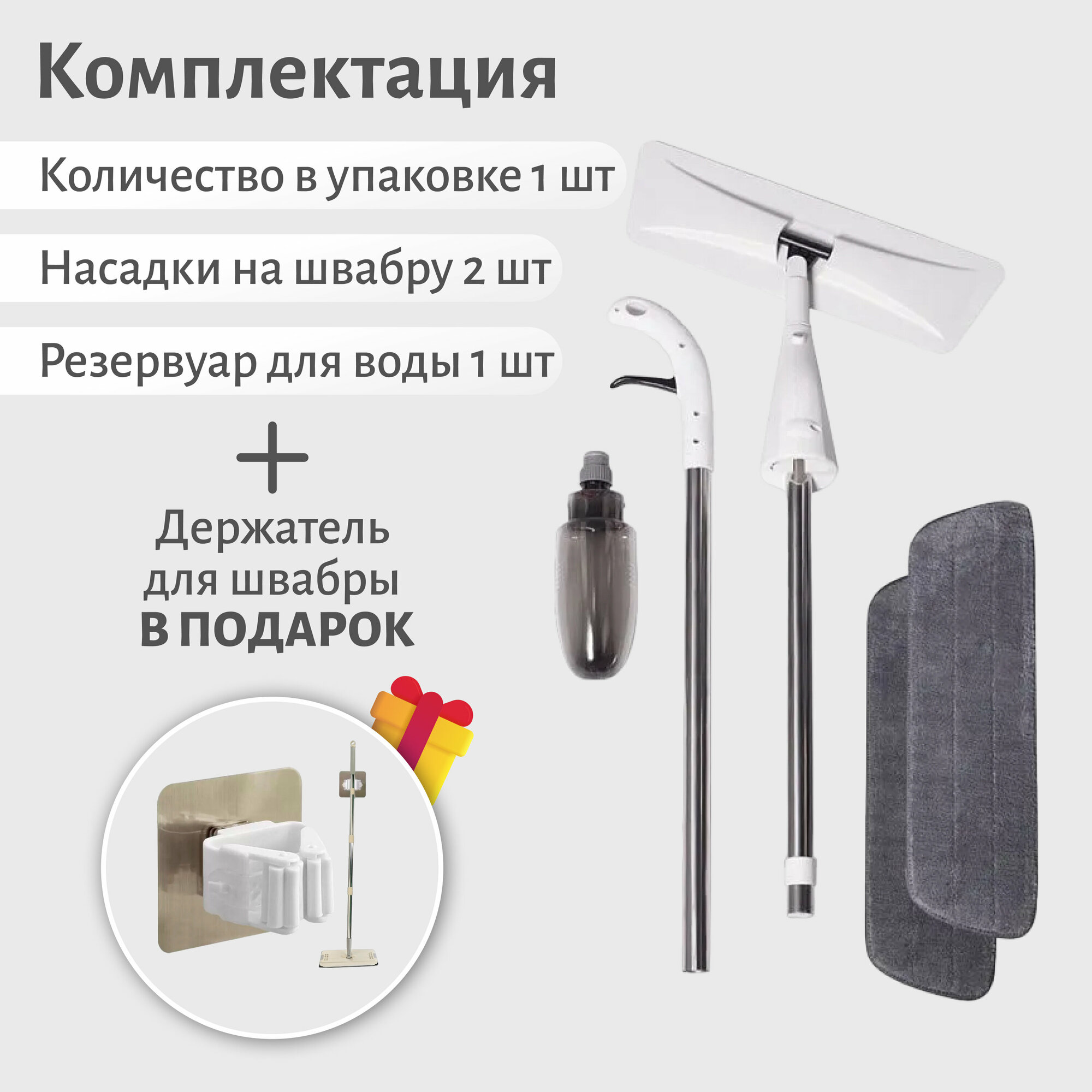 Швабра с распылителем, съемные насадки в комплекте, держатель в подарок/универсальная, для любых покрытий интересное: