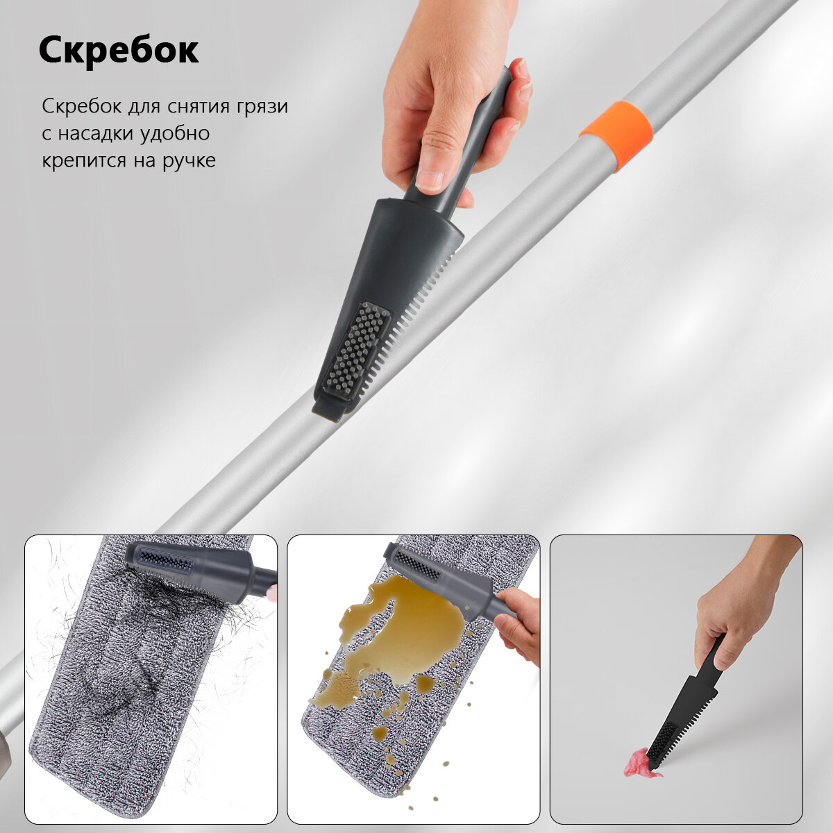 Черно-оранжевая швабра с распылителем, 3 насадки.