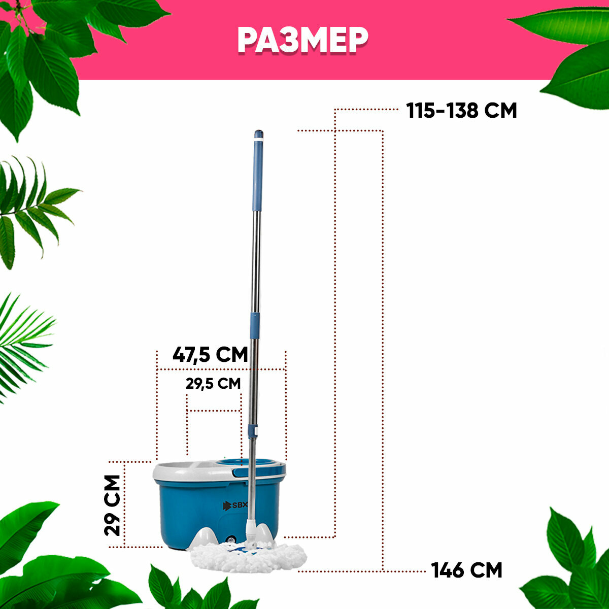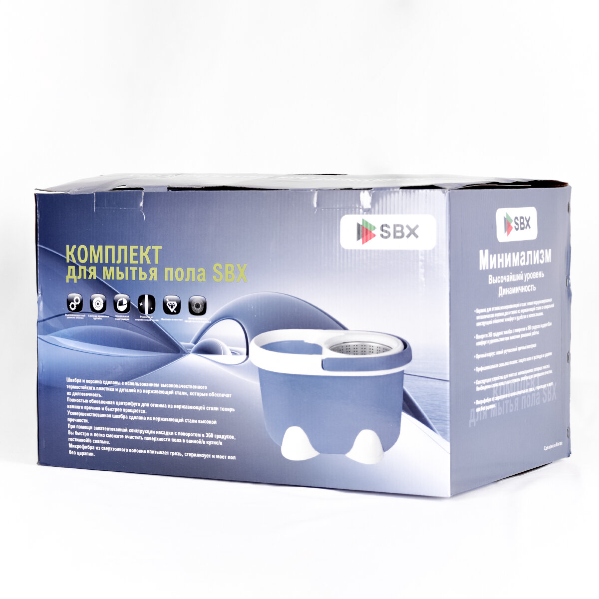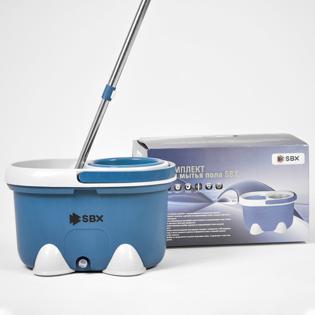 Швабра SBX-21 с отжимом и ведром 20 л, комплект для уборки и мытья пола с насадкой из микрофибры, темно-синий интересное: