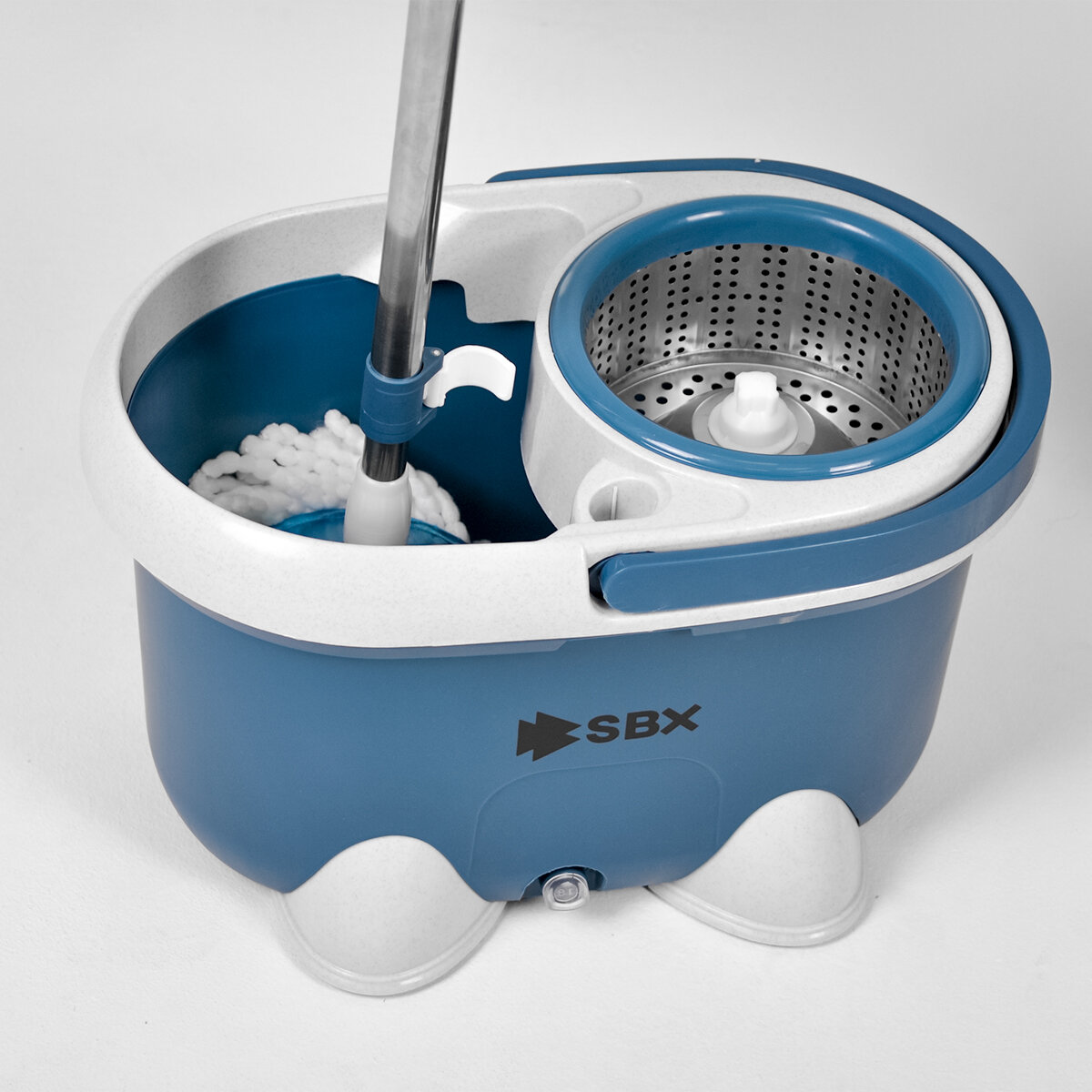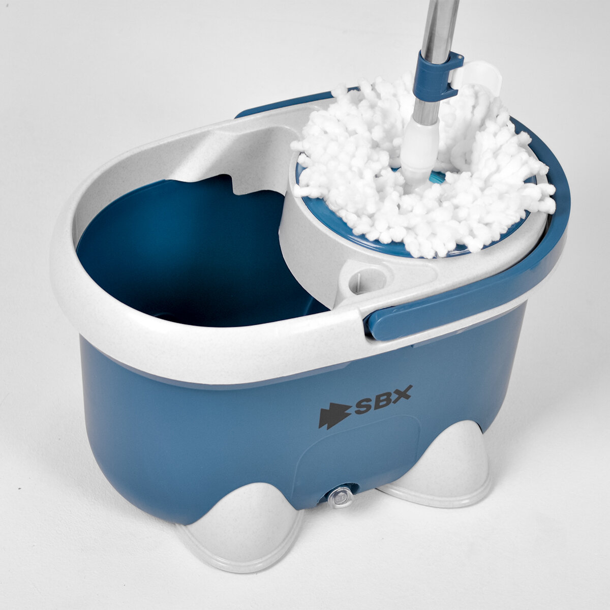 Швабра SBX-21 с отжимом и ведром 20 л, комплект для уборки и мытья пола с насадкой из микрофибры, темно-синий. Насадка-2 шт