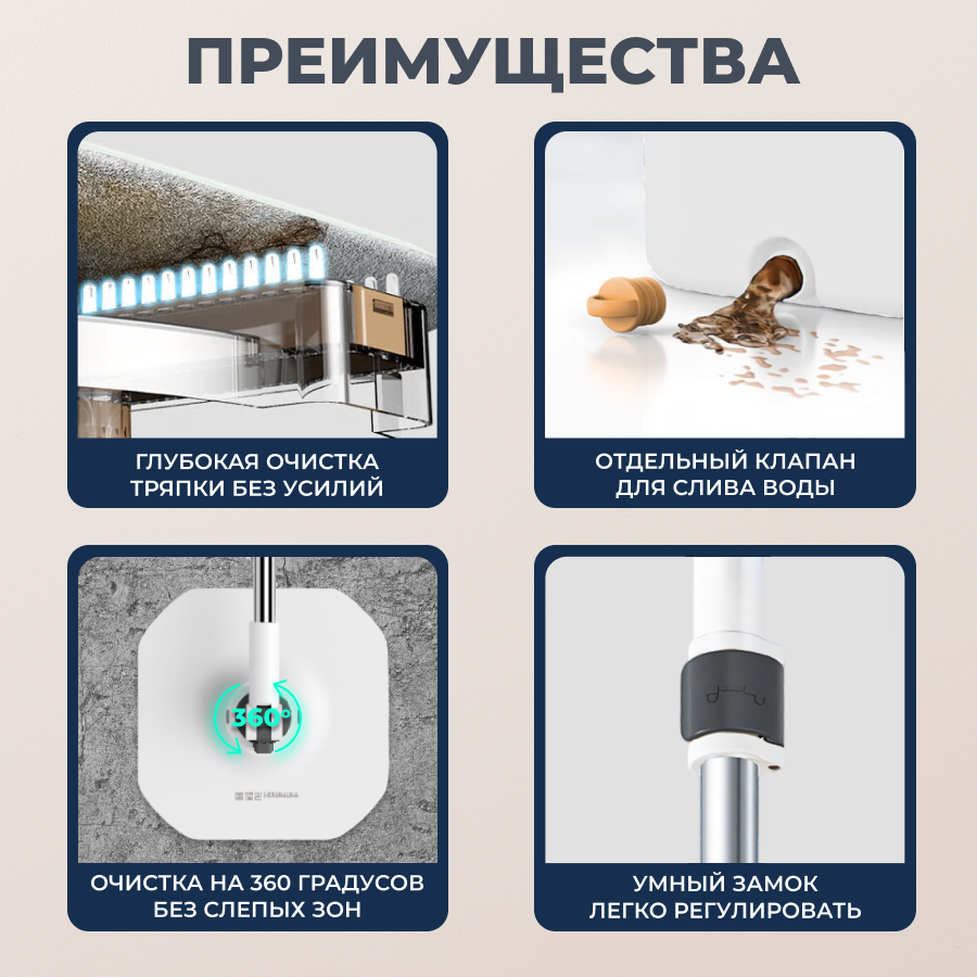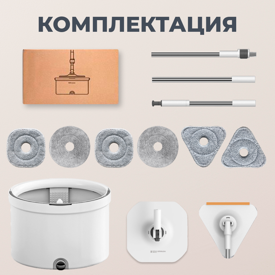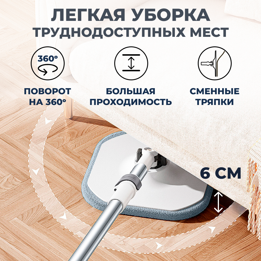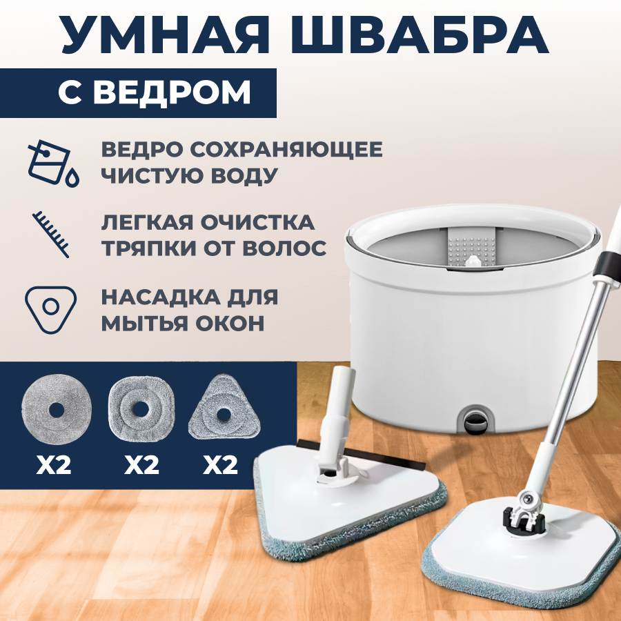 Умная швабра с отжимом и ведром Rechoiz, швабра для мытья полов, ведро с отжимом и шваброй + насадки для мытья окон и пола интересное: