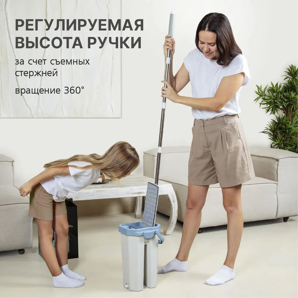Швабра с отжимом и ведром на 8 литров + 2 сменные насадки из микрофибры интересное: