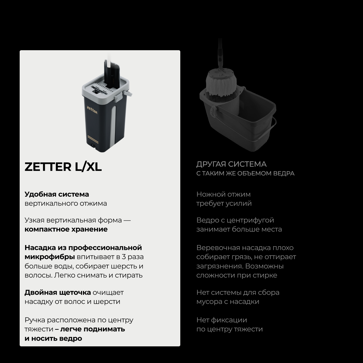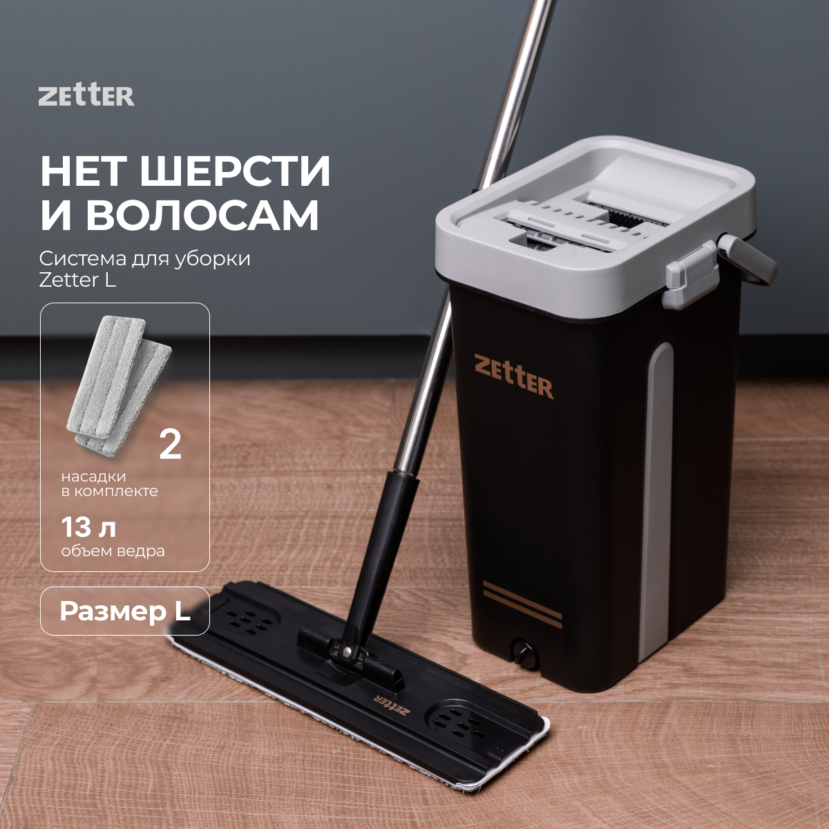 Швабра с отжимом и ведром Zetter L/XL (13 л) интересное: