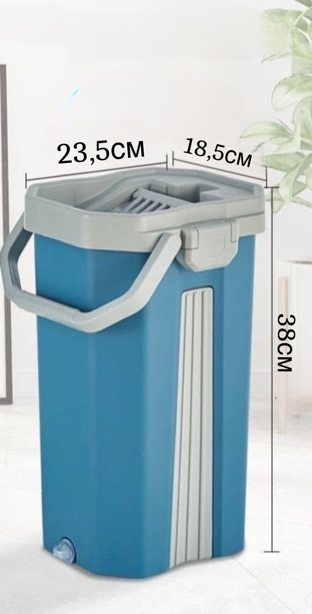 Купить Швабра с отжимом и ведром для мытья пола, цвет синий