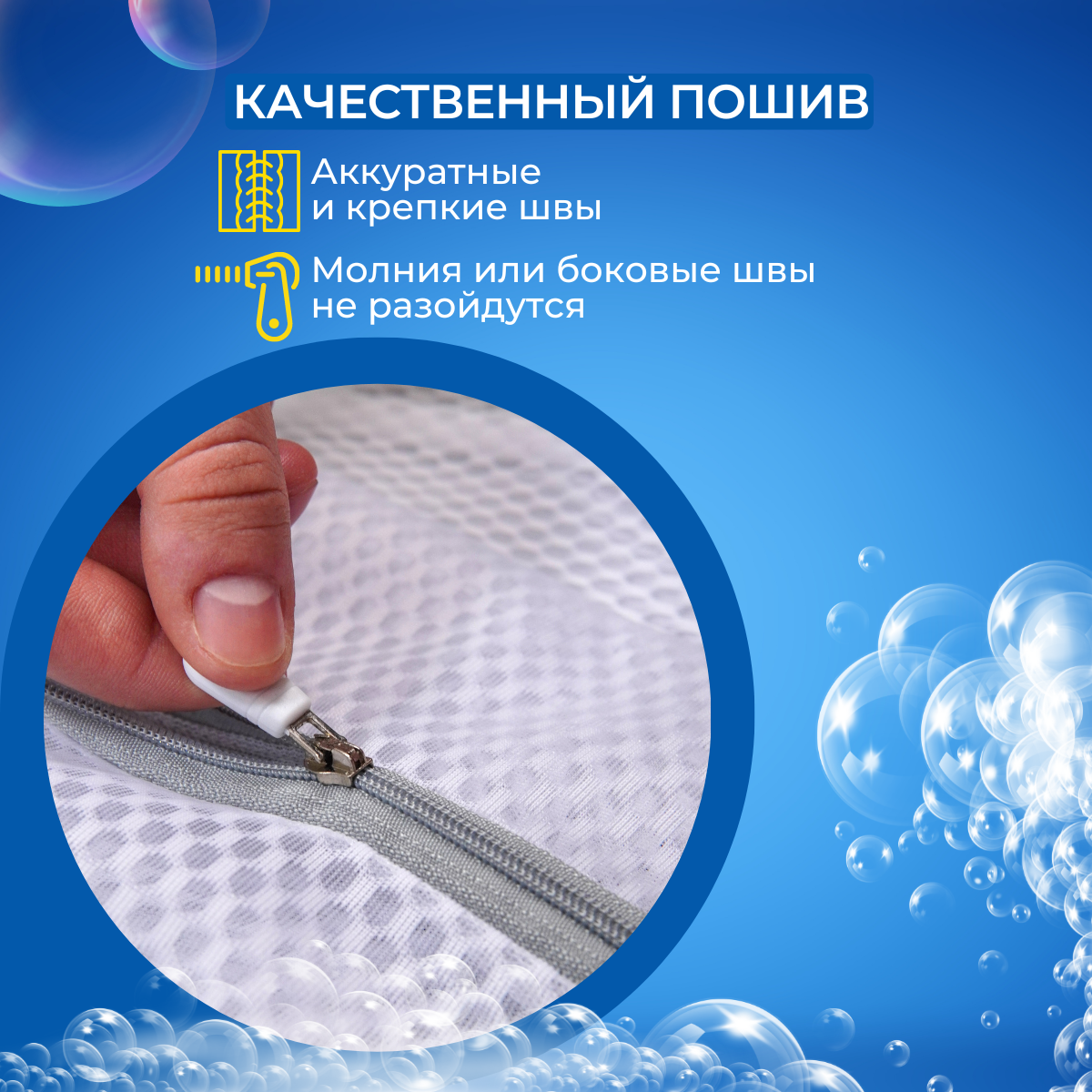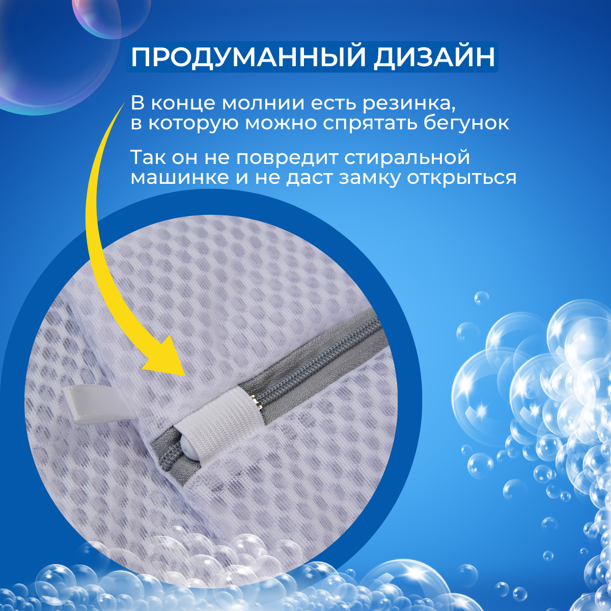 Набор мешков для стирки с застежкой-молнией "Идея и точка" 6 штук, синий